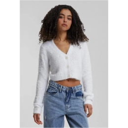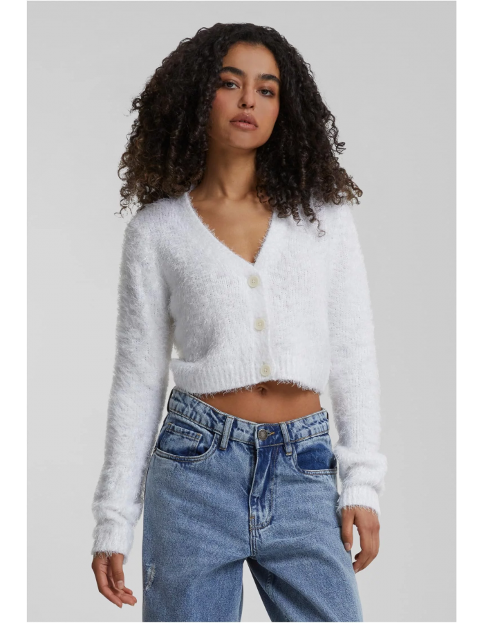 Kardigan má měkkou, chlupatou texturu a je zapínán na tři větší knoflíky na přední straně. Střih je krátký a sahá do pasu, což mu dodává moderní a stylový vzhled. Tento kardigan je ideální pro chladnější dny, kdy chcete zůstat v teple a zároveň vypadat módně.