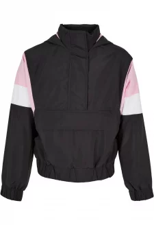 Dívčí světlá 3-tónová přetahovací bunda černá/dívčí růžová/bílá