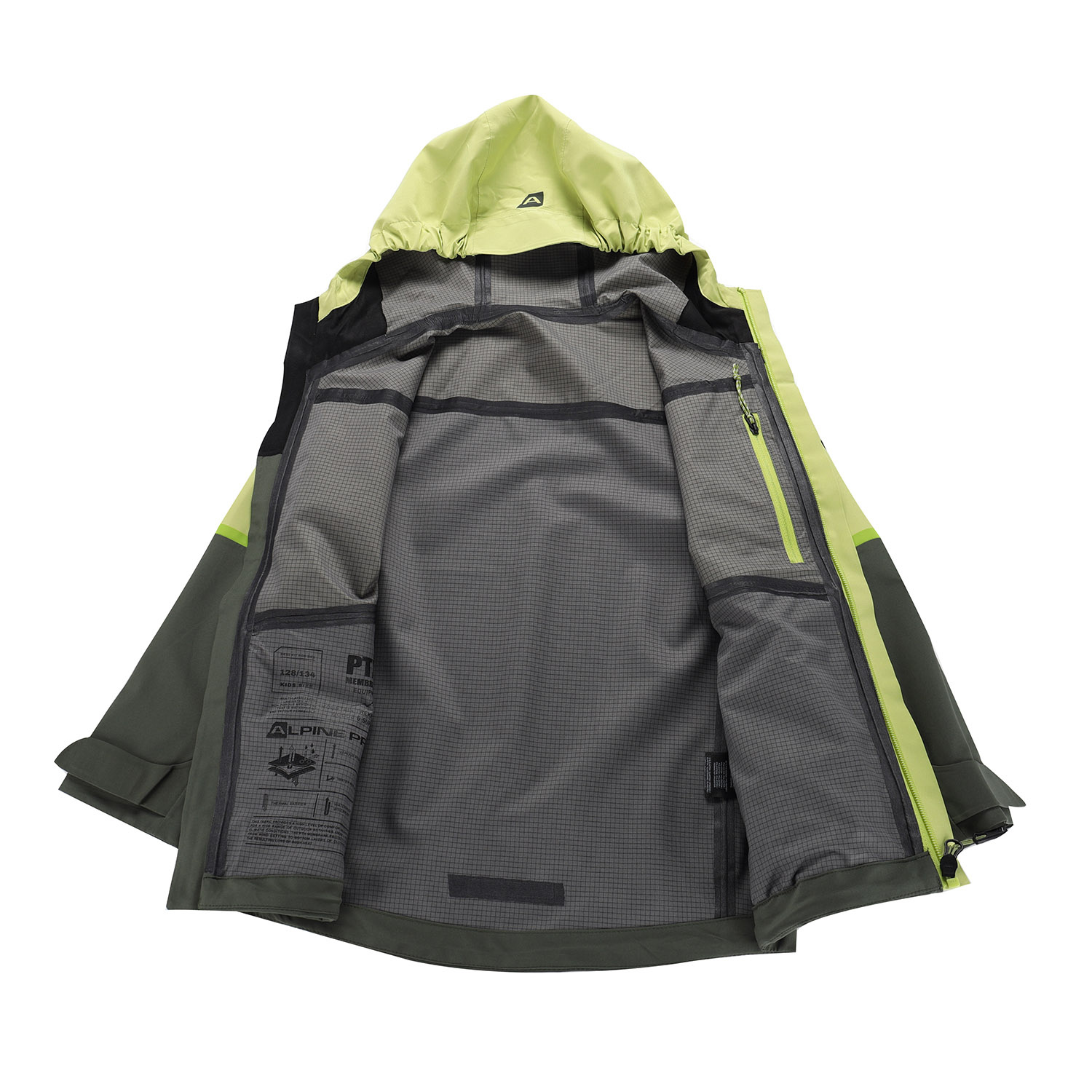 Funkční materiál je vodoodpudivý, nepromokavý, větruodolný, vysoce prodyšný a zároveň pružný, takže poskytuje maximální ochranu před deštěm, sněhem a větrem, aniž by omezoval pohyb. Membrána PTX v kombinaci s úpravou DWR zajišťuje špičkové parametry s vodním sloupcem 15 000 mm a paropropustností 15 000 g/m2/24h při Ret < 6, bunda tak spolehlivě odvede vlhkost od těla a udrží dítě v suchu i při náročných aktivitách.