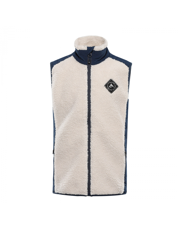 Je vyrobena z hřejivého a pružného fleecu s hustým chlupem, který je velmi příjemný na omak a poskytuje vysoký komfort při nošení. Polopřiléhavý střih neomezuje v pohybu, takže je vesta vhodná na hry venku, procházky v přírodě i každodenní nošení do školky či školy. Praktické detaily, jako jsou přední kapsy na zip s reflexním přívěskem pro větší bezpečnost, krytka u brady proti odření a stylová nášivka na předním dílu, dělají z vesty oblíbený kousek dětského šatníku.