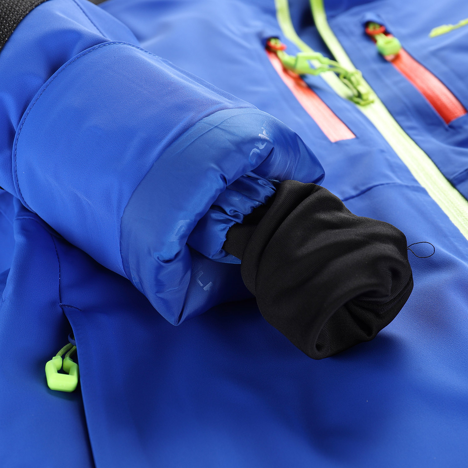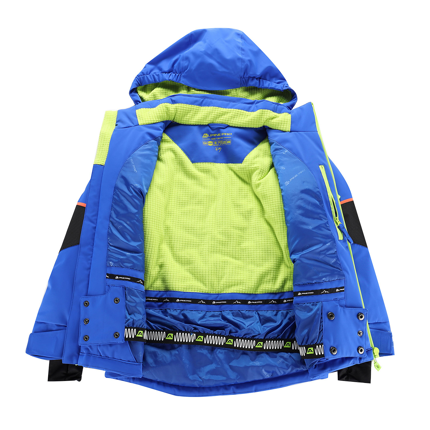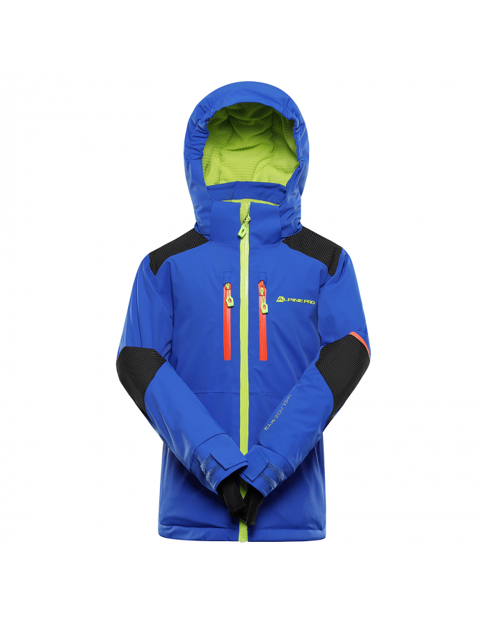 Odepínatelná kapuce s hřejivou podšívkou a gumovým lemem poskytuje další ochranu při nepříznivém počasí. Hlavní zip je voděodolný a kontrastní, což dodává bundě moderní vzhled. Rukávy jsou anatomicky tvarované, v dolní části nastavitelné manžetou se suchým zipem a navíc doplněné vnitřními úpletovými manžetami, které zabraňují proniknutí chladu a sněhu. Samozřejmostí je také neodepínatelný sněhový pás, který ocení zejména malí lyžaři. Pro maximální funkčnost nechybí ani odvětrávání v podpaží se zipy a celkem šest kapes – náprsní s voděodolným zipem, praktická kapsa na rukávu pro skipas, dvě přední kapsy, kapsa s hřejivou podšívkou a vnitřní kapsa na zip. Reflexní potisky na předním a zadním dílu i na rukávu zajišťují lepší viditelnost a tím i bezpečnost. Delší taháčky u zipů umožňují snadnou manipulaci i v rukavicích.