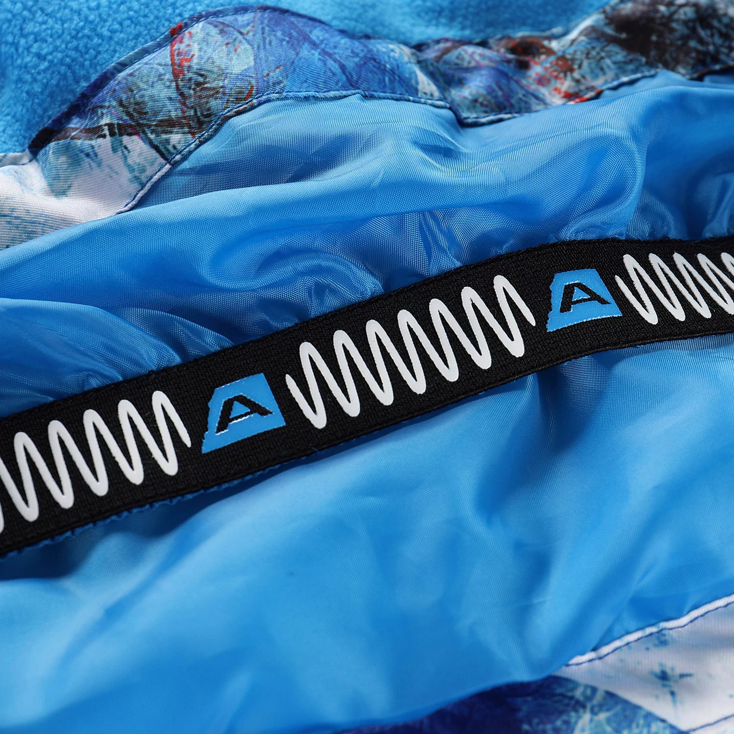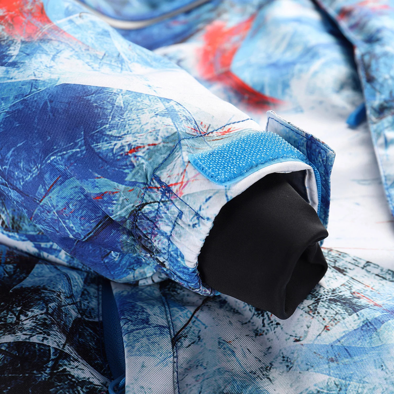 Napevno všitá ochranná sněhová manžeta, která zabraňuje pronikání sněhu pod oděv. Ve spodní části je našita elastická protismyková guma.