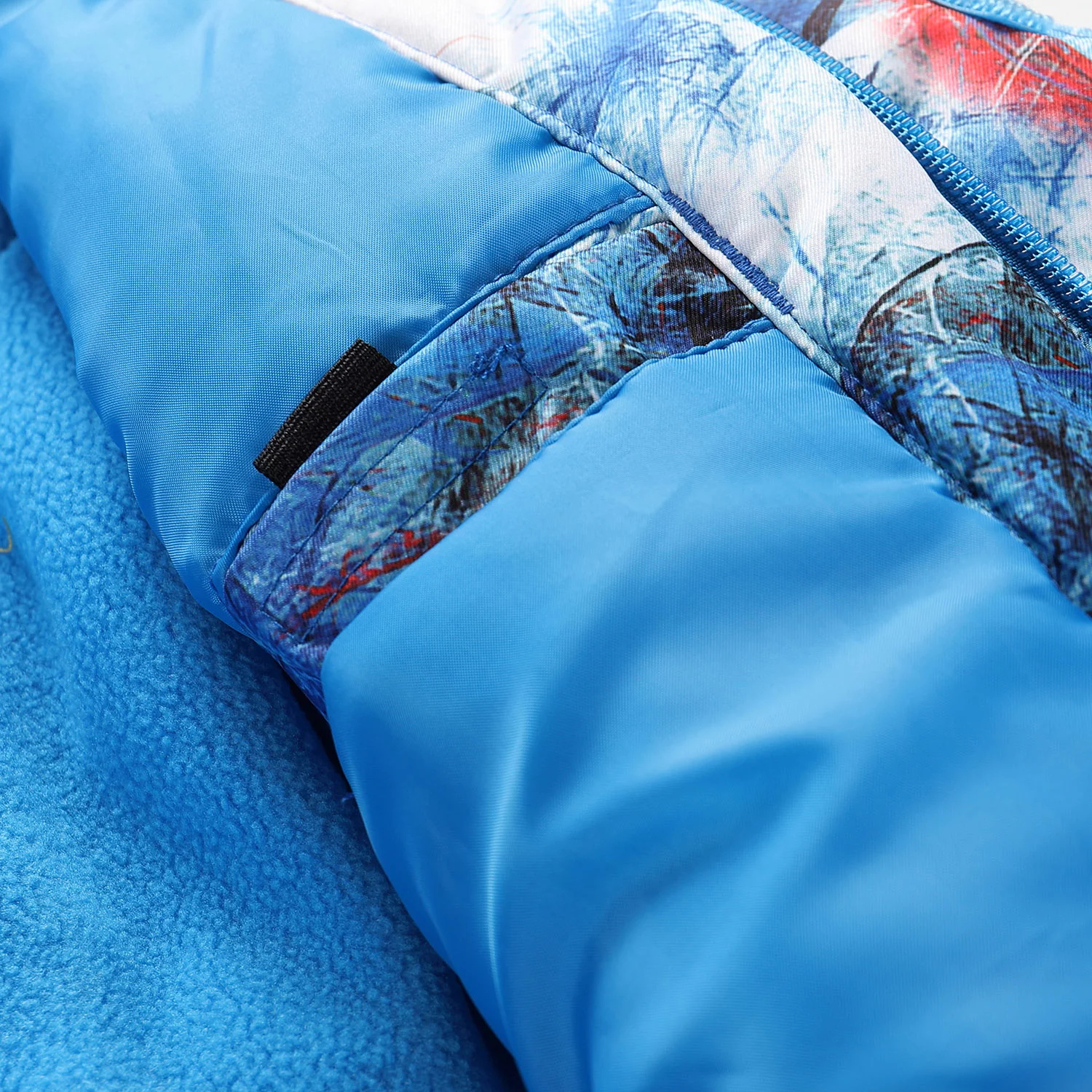 Kapsy na oděvu jsou z počesaného materiálu pro lepší zahřátí rukou.