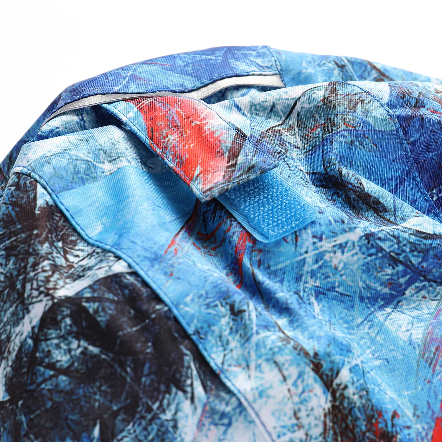 Kapuce umožňuje nastavit velikost otvoru pro obličej a regulaci obvodu hlavy pomocí gumičky nebo výšku kapuce pomocí suchého zipu.