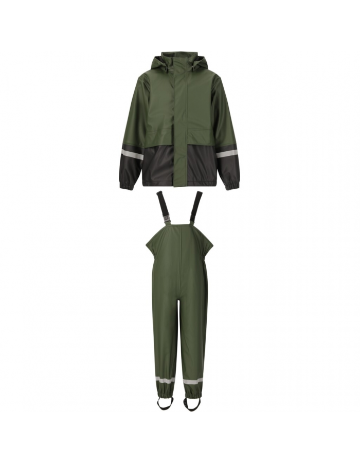 Oba kusy jsou vyrobeny z odolného a voděodolného materiálu, který spolehlivě chrání před deštěm a zároveň je dostatečně flexibilní pro volný pohyb dětí.