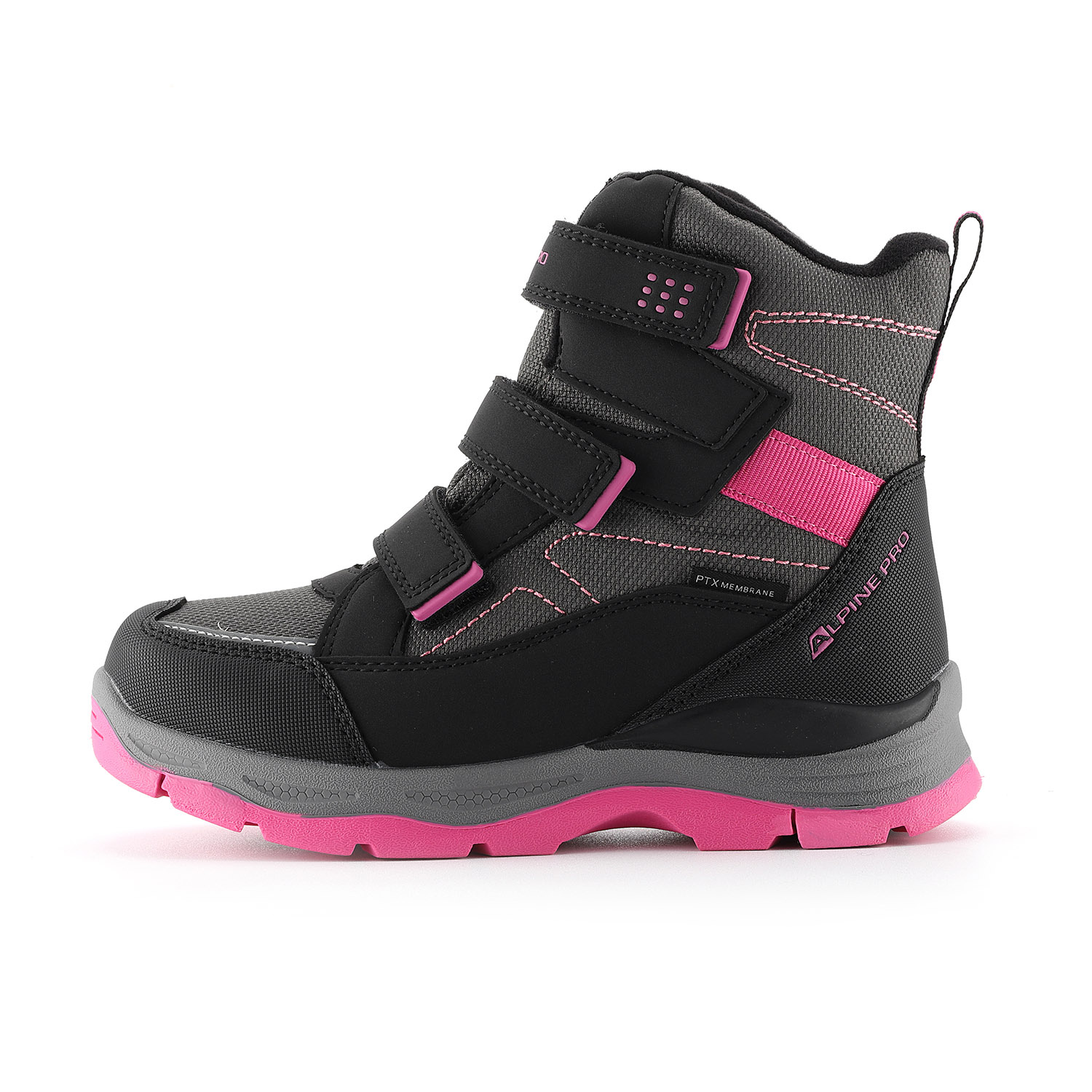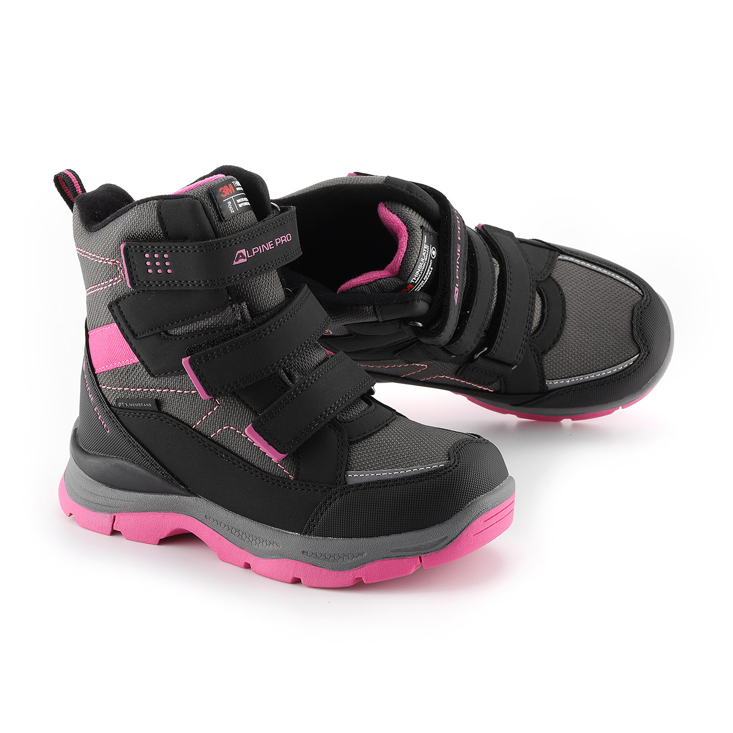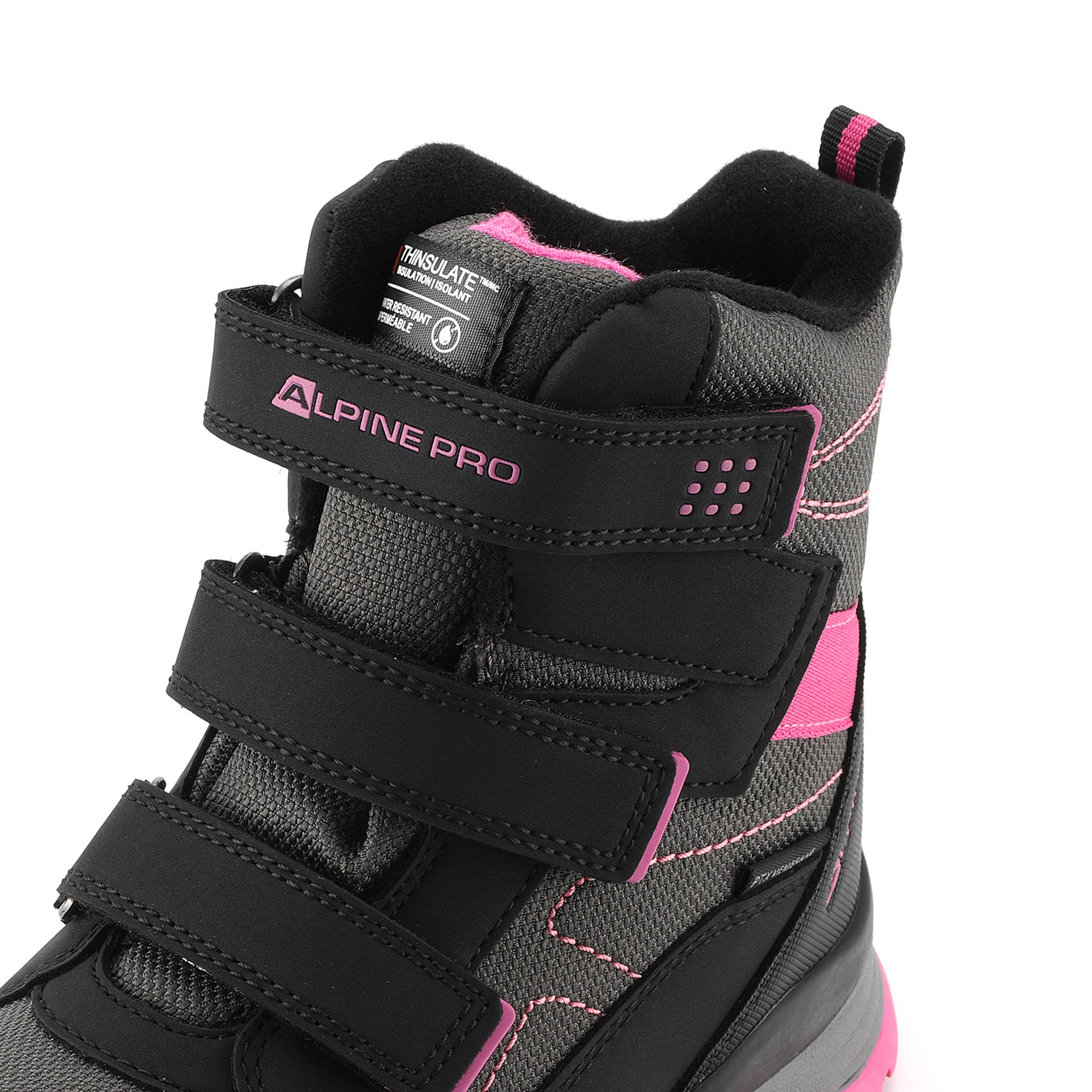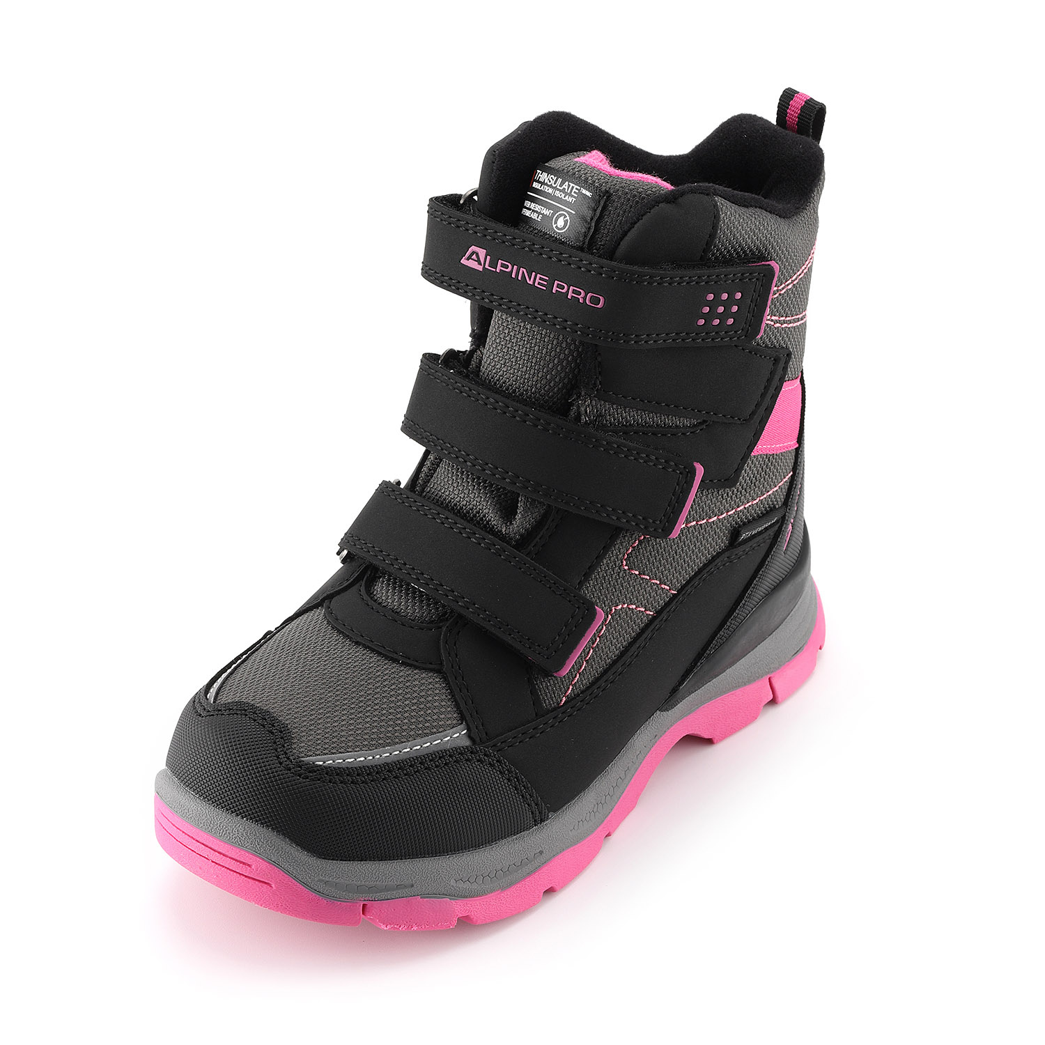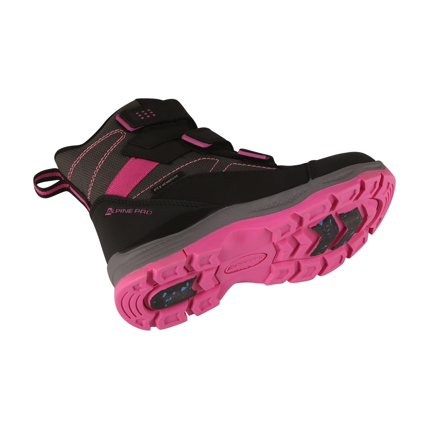 Obouvání je velmi jednoduché díky pružné tkanici se zdrhovadlem, které dítě zvládne ovládat samostatně. Pro snazší nazouvání slouží také praktické poutko na patě. Boty jsou univerzální – vhodné jak pro kluky, tak pro holky. Podešev je vyrobena z odolného TPR materiálu, který je oděruvzdorný a má dlouhou životnost. Na vnější straně obuvi se nachází decentní logo značky Alpine Pro.