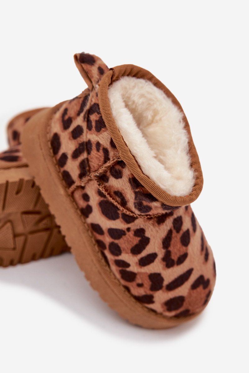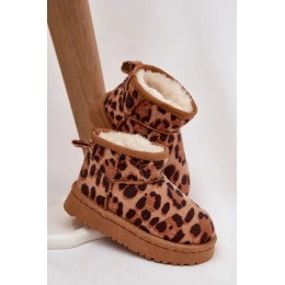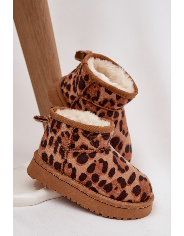 Hnědé dětské a juniorské sněhule Mireya s kožíškem a trendy panterkovým vzorem kombinují pohodlí, teplo a styl. Zateplení uvnitř bot udržuje nohy v teple během chladných dnů, zatímco pevná a odolná podrážka zajišťuje stabilitu a bezpečnou chůzi. Moderní design potěší děti i mladistvé.
