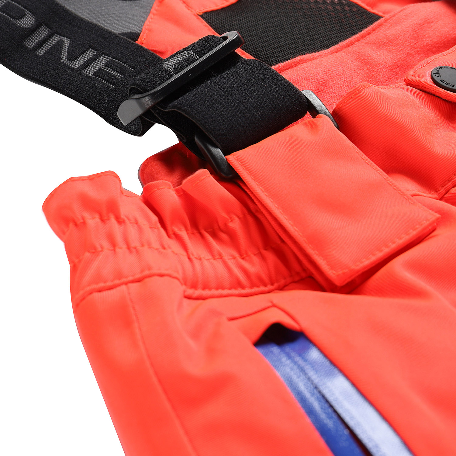 Střední hřejivá výplň a přiléhavý střih zajišťují teplo a pohodlí, regulovatelný pas a podlepené švy přispívají k dokonalému komfortu. Kalhoty mají nastavitelné a odepínatelné šle, odvětrávání na stehnech, anatomicky tvarovaná kolena a zesílené nohavice proti oděru. Praktické detaily jako sněhová manžeta, rozepínací spodní část nohavic, dvě kapsy s voděodolnými zipy a delší taháčky pro snadnou manipulaci v rukavicích ocení každý malý sportovec.