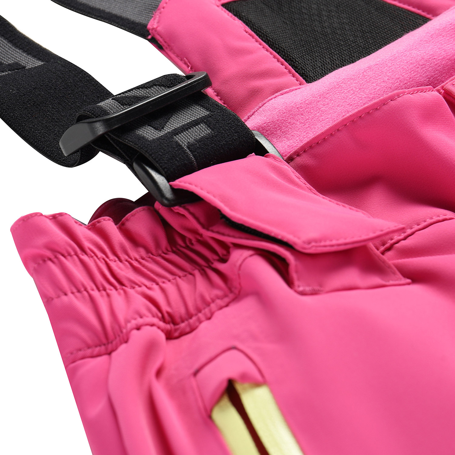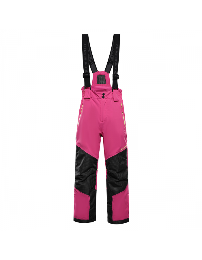 Střední hřejivá výplň a přiléhavý střih zajišťují teplo a pohodlí, regulovatelný pas a podlepené švy přispívají k dokonalému komfortu. Kalhoty mají nastavitelné a odepínatelné šle, odvětrávání na stehnech, anatomicky tvarovaná kolena a zesílené nohavice proti oděru. Praktické detaily jako sněhová manžeta, rozepínací spodní část nohavic, dvě kapsy s voděodolnými zipy a delší taháčky pro snadnou manipulaci v rukavicích ocení každý malý sportovec.