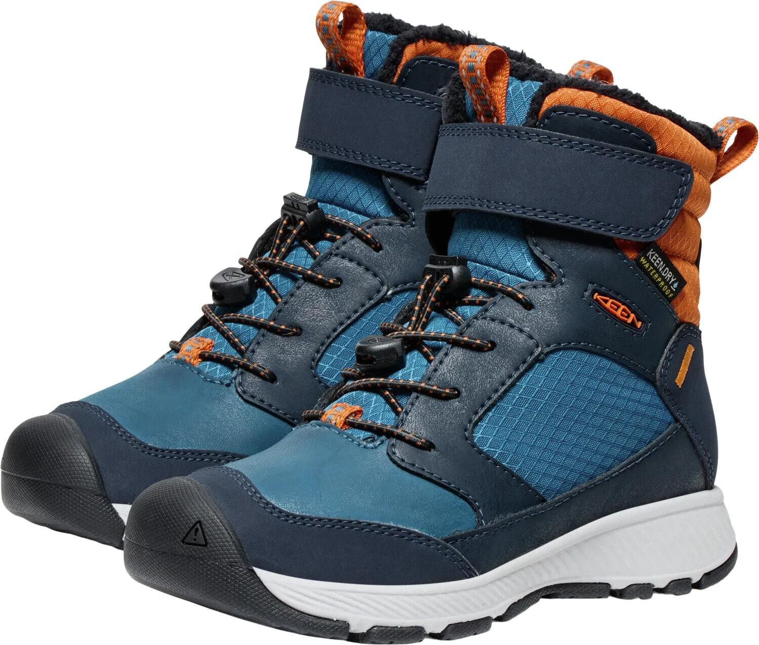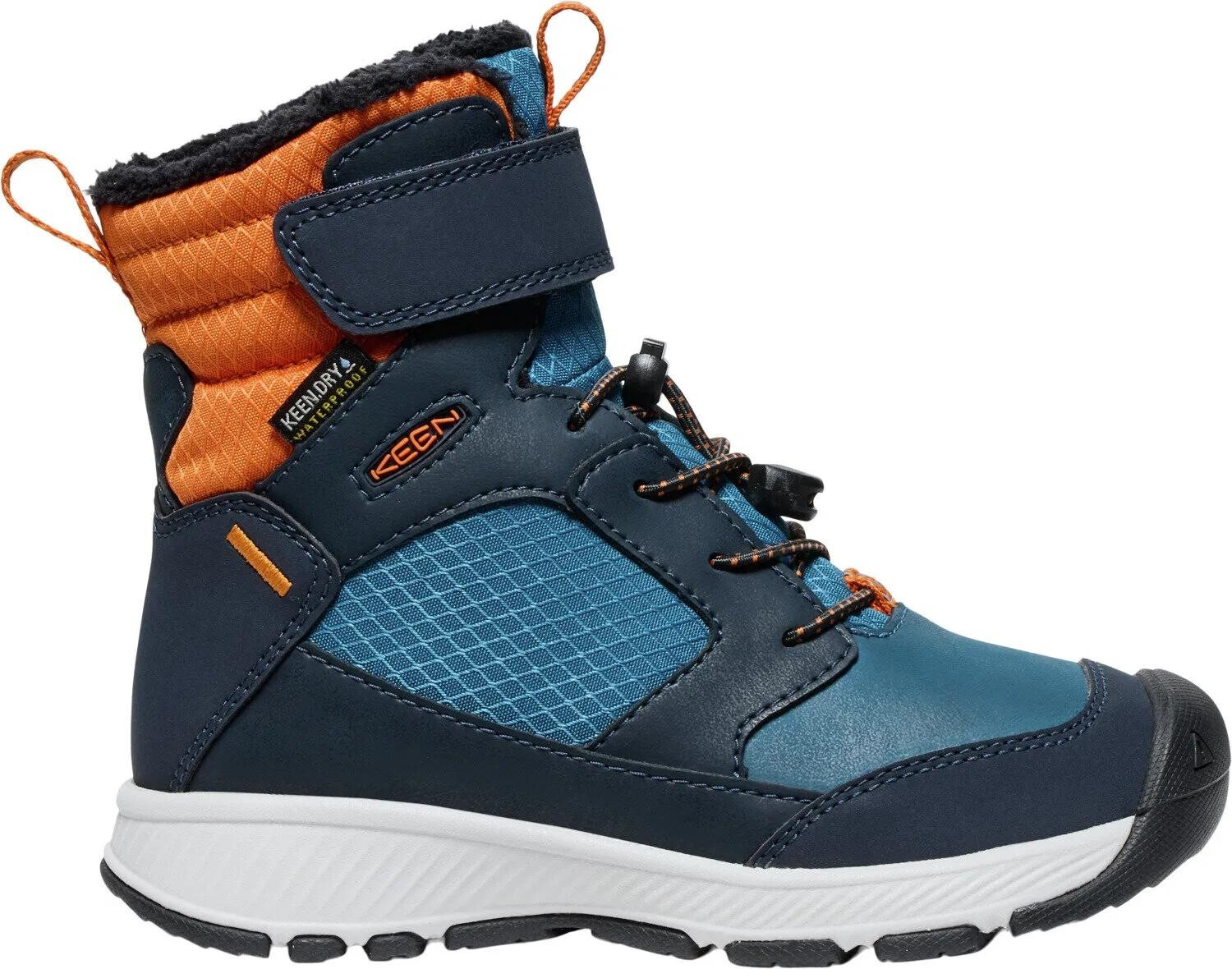 Nepromokavé vysoké dětské zimní boty udrží vaše děti v suchu a teple až do -32 °C díky izolaci KEEN.WARM.V dětských zimních botách SKUA Winter WP si vaše děti na zmrzlé nohy stěžovat nebudou. 200 gramů izolace KEEN.WARM udrží teplo v botě až do -32 °C. O vyšší tepelný komfort se postará také fleecová podšívka a Thermal Heat Shield stélka, která zachytí teplo chodidel. Svršek těchto dětské zimních boty je vyrobený z prémiové kůže a syntetického materiálu. O voděodolnost se postará membrána KEEN.DRY a ekologická impregnace bez zdraví škodlivých PFAS. Vnitřek boty je ošetřen technologií ECO ODOR CONTROL, která omezuje vznik mikroplísní a zápachu. Rychlé a bezproblémové obouvání umožňuje šněrovací systém s lankem a zapínání na suchý zip.