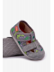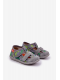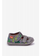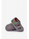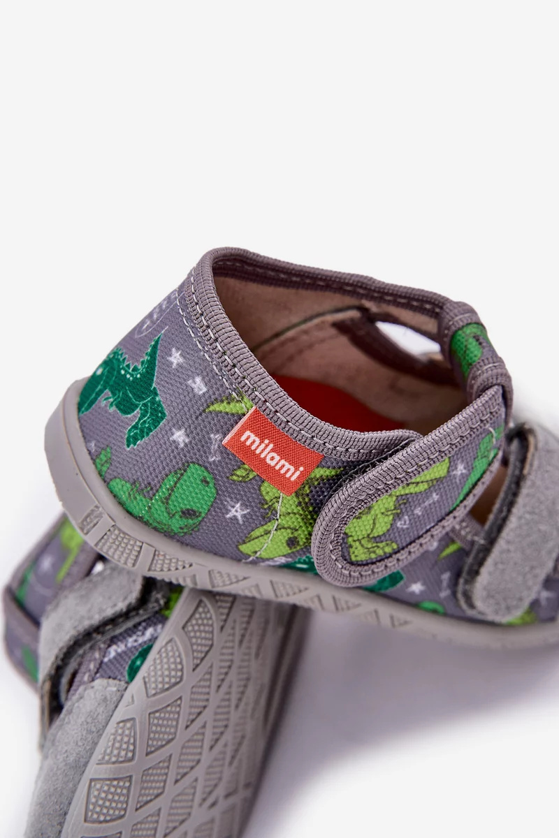 Šedo-zelené dětské papuče Reathiana s motivem dinosaurů a praktickým zapínáním na suchý zip jsou měkké a pohodlné. Poskytují dětem volnost pohybu a bezpečí při každém kroku, ideální pro domácí nošení.