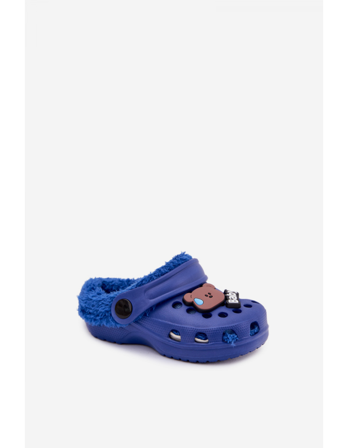 Dětské pantofle z lehkého pěnového materiálu jsou zateplené měkkým kožíškem, který udržuje nohy v teple a pohodlí při domácím nošení. Ozdobné připínky dodávají pantoflím hravý vzhled, který si děti rychle oblíbí. Tmavě modré provedení je praktické a univerzální, vhodné pro každodenní použití.