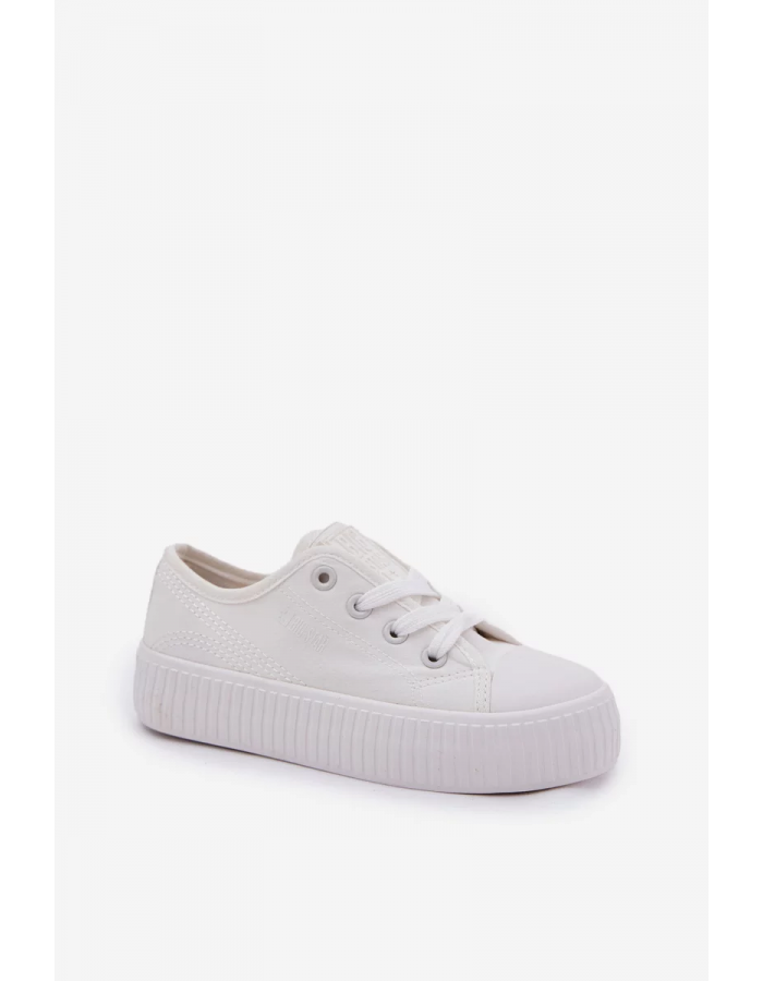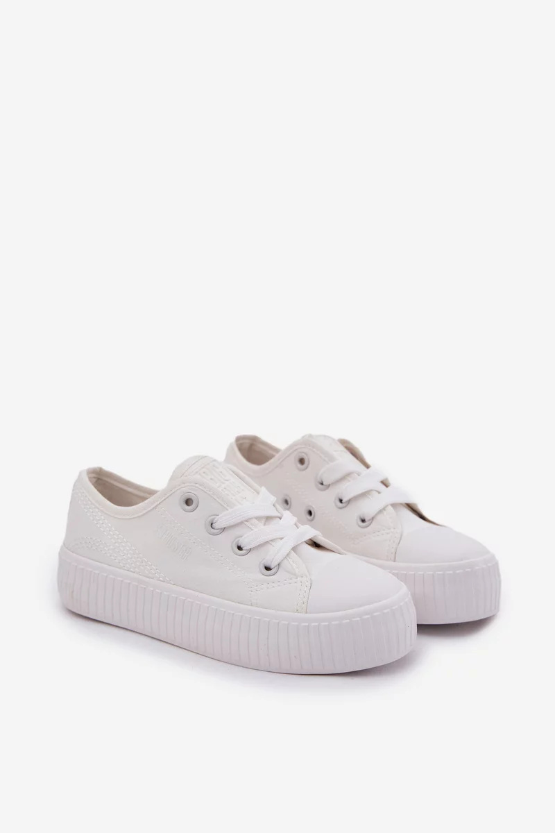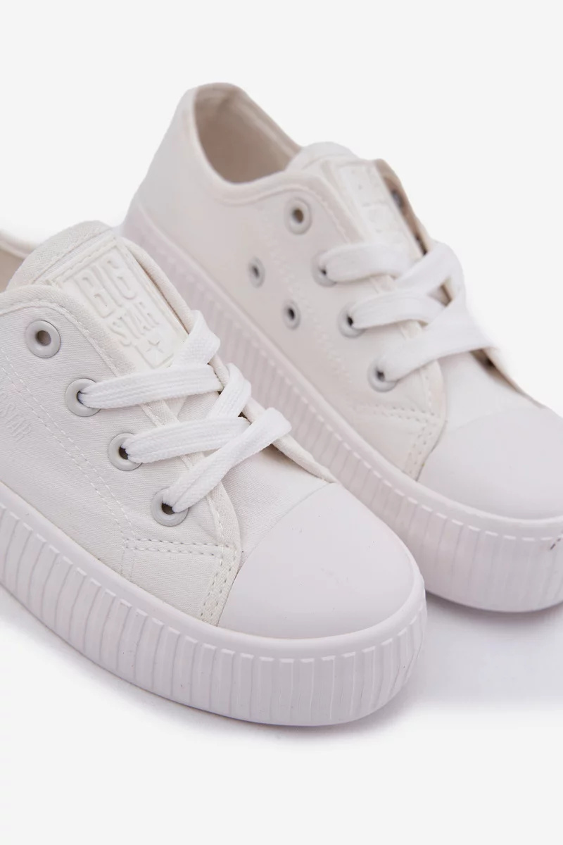 Klasické šněrovací tenisky Big Star v bílé barvě jsou ideální volbou pro aktivní děti. Vyrobené z prodyšného textilu, nabízejí pohodlí při každodenním nošení do školy, na hřiště i na procházky. Nízký střih a flexibilní podrážka zajišťují volnost pohybu a dobré odpružení při chůzi.