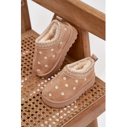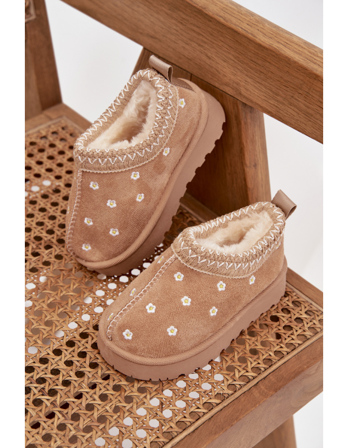 Stylové dětské sněhule Palina v béžovém provedení s květinovým vzorem a měkkým kožíškem kombinují pohodlí a hravý vzhled. Teplé zateplení udrží nožičky v teple i během chladných zimních dní, zatímco lehká a flexibilní podrážka poskytuje stabilní a bezpečný krok.