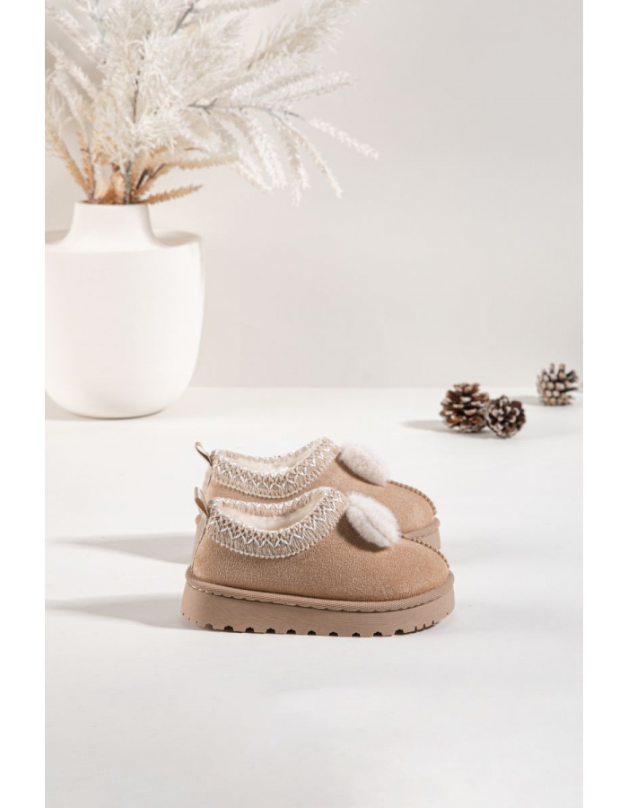 Roztomilé dětské sněhule Daven v béžovém odstínu s jemnou výšivkou a dekorativní mašličkou jsou ideální na zimní období. Teplé zateplení udrží nožičky v pohodlí, zatímco lehká a flexibilní podrážka zajistí bezpečný a komfortní krok. Dekorativní detaily dodávají botkám hravý a elegantní vzhled.