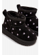 Botky dobře ladí s černou, růžovou nebo červenou zimní bundou. Srdíčkový motiv dodá dětskému outfitu hravost a veselost.