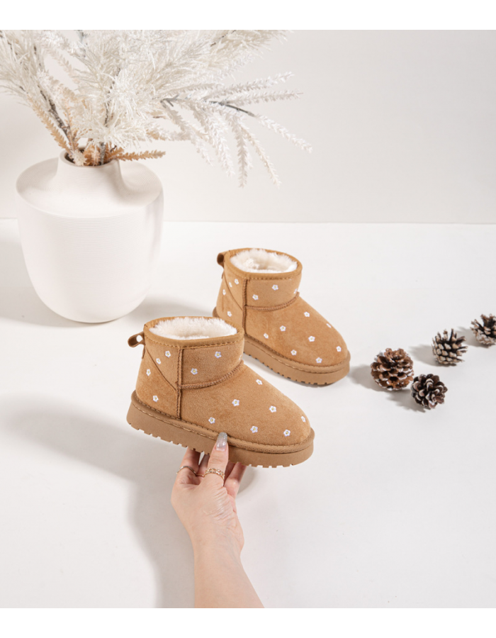 Stylové a hřejivé dětské sněhule Gracina v camel provedení jsou ideální pro zimní období. Boty jsou zdobené jemnými květinovými motivy, které dodávají hravý a veselý vzhled. Měkký vnitřní kožíšek poskytuje výborné teplo a komfort během chladných dní. Praktický střih umožňuje snadné nazouvání a pohodlné nošení, zatímco pevná podrážka zajišťuje stabilitu při chůzi i na kluzkém povrchu.