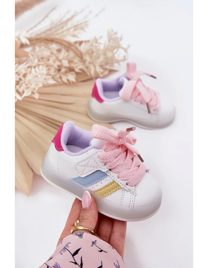 Dětské sportovní sneakers Arielle se svítící podrážkou v bílo-růžovém provedení jsou skvělou volbou pro děti, které chtějí pohodlné boty na každý den a zároveň je baví hravé detaily. Svítící podrážka se rozsvítí při chůzi a dodá botám zábavný efekt, který děti ocení ve škole, na hřišti i na procházkách. Sportovní střih podporuje volnost pohybu a je vhodný na aktivní dny plné běhání. Bílo-růžová kombinace působí svěže, jemně a snadno se ladí s dětskými outfity.