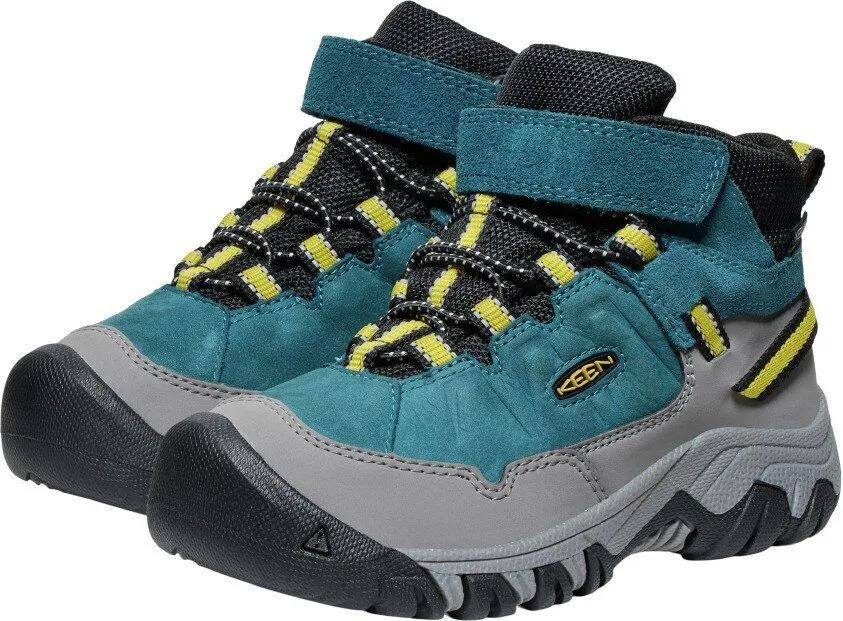 Vylepšené dětské nepromokavé turistické boty s membránou KEEN.DRY a odlehčenou podešví KEEN.FUSION ve vyšší variantě ke kotníku.Kotníková lehká dětská bota Targhee IV MID WP se hodí pro volný čas, hiking ale i do školy. Svršek je vyrobený z voděodolné prémiové kůže a pevné síťoviny. Prodyšná membrána KEEN.DRY a impregnace bez toxických PFAS se postarají o voděodolnost bot. Díky propustné podšívce ze síťoviny se noha dítěte nepřehřívá a zbytečně nepotí. Vnitřek boty je ošetřen technologií ECO ODOR CONTROL, která omezuje vznik mikroplísní a zápachu. Nová technologie použitá u tohoto modelu je gumová podešev KEEN.FUSION, která zaručuje nízkou hmotnost a odolnost. Podešev je vyrobená co nejvíc ekologicky, bez použití toxických lepidel. Podrážka nebarví a díky vícesměrným výstupkům napomáhá k bezpečnému a jistějšímu pohybu v terénu. Komfort během nošení zaručují PU stélka s podporou klenby, tlumící PU mezipodešev a také ikonický široký střih KEEN Original Fit s velkorysým prostorem pro prsty.
