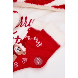 Dětské vánoční ponožky s hebkým kožíškem a motivem medvídka jsou ideální pro zimní období, kdy chcete dětem dopřát maximální pohodlí a teplo. Díky podílu alpaka vlny ponožky dobře hřejí a jsou příjemné na domácí nošení během svátků i v běžných zimních dnech. Červená barva podtrhne vánoční atmosféru a motiv medvídka dodá ponožkám hravý detail.