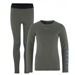 Dětský funkční set CRAFT Warm je vhodný na outdoorové aktivity v chladném počasí. Materiál: 100% polyester Triko - pohodlný střih - jemně česaný fleece uvnitř - ploché švy Spodky: - nekrytá guma v pase - ploché švy