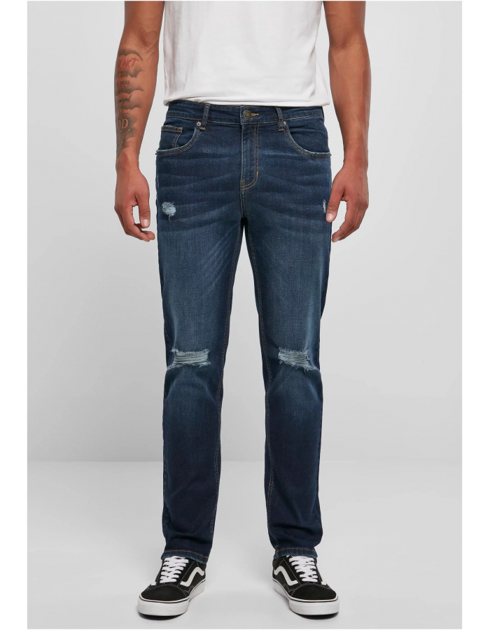 Pánské džínoviny mají tvar s 5 kapsami, pravidelný pas a důmyslně umístěné zničené prvky na přední straně. Džíny mají regular střih a jsou vyrobeny z příjemné bavlny s mírným podílem elastanu.