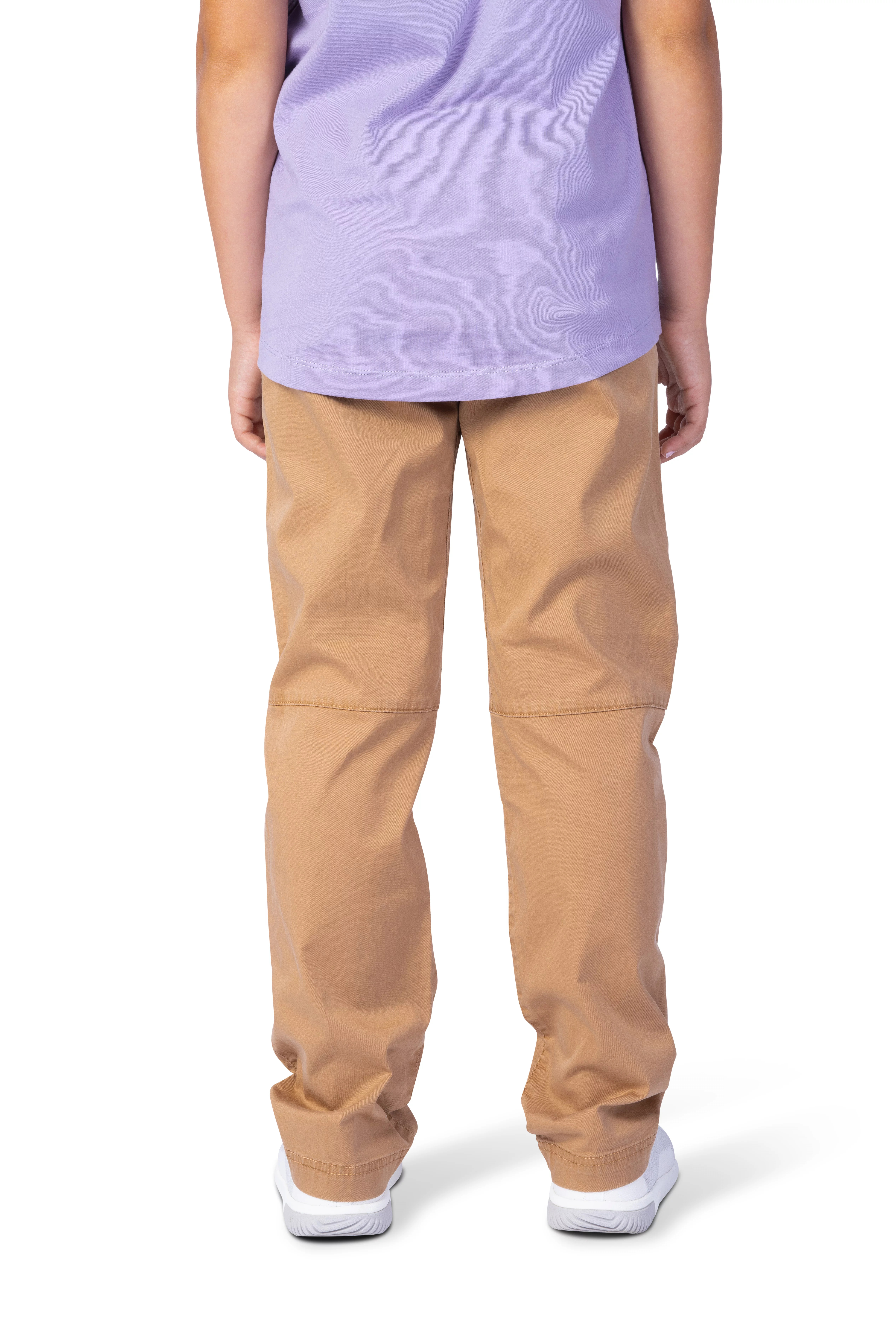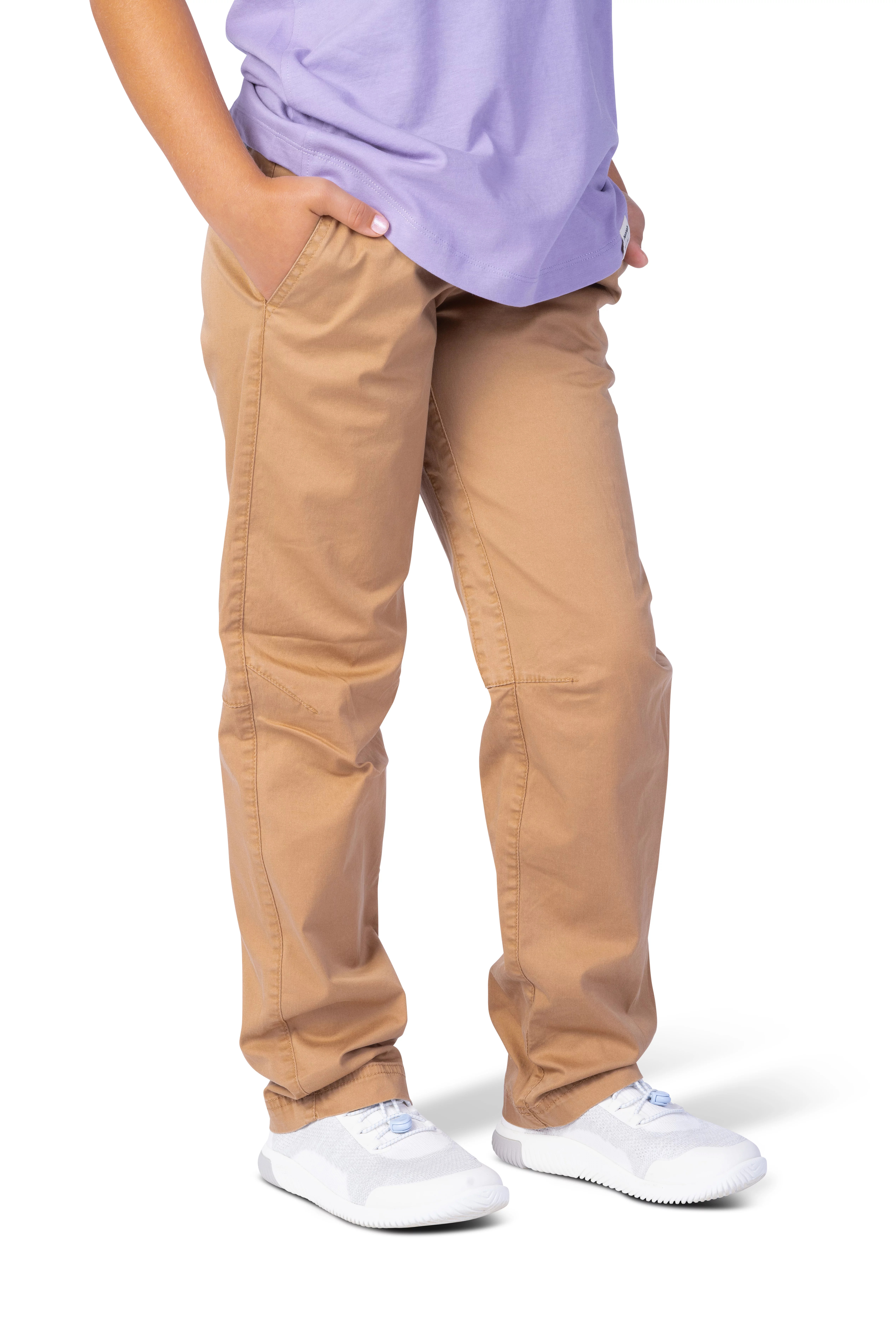 Chlapecké bavlněné kalhoty technického střihu s anatomicky tvarovanými koleny poskytují volnost pohybu a flexibilitu. Kalhoty jsou vyrobeny z kvalitní bavlny, která je prodyšná a příjemná na dotek, příměs elastanu dodává kalhotům poddajnost. Pas do gumy s regulací na šňůrku umožňuje individuální přizpůsobení a pohodlí během nošení. Kalhoty disponují 2 kapsami v přední i zadní části. Univerzální design v kombinaci s přírodním materiálem je ideální do přírody, ale i pro každodenní nošení.