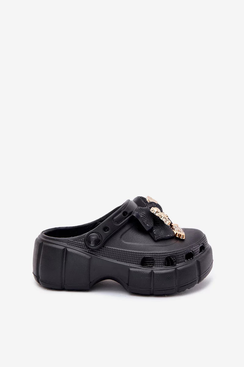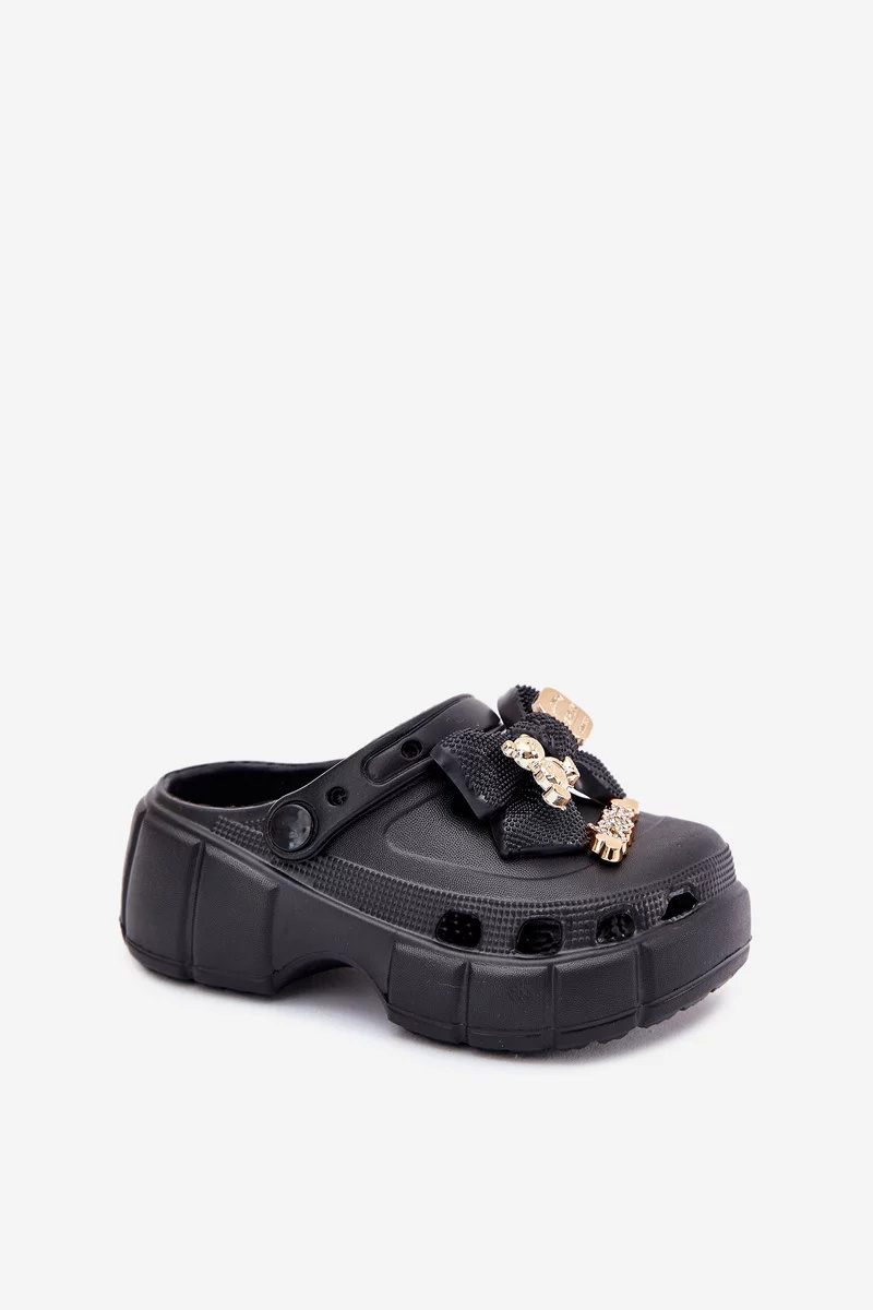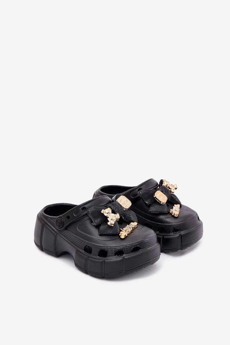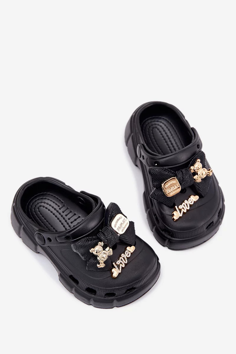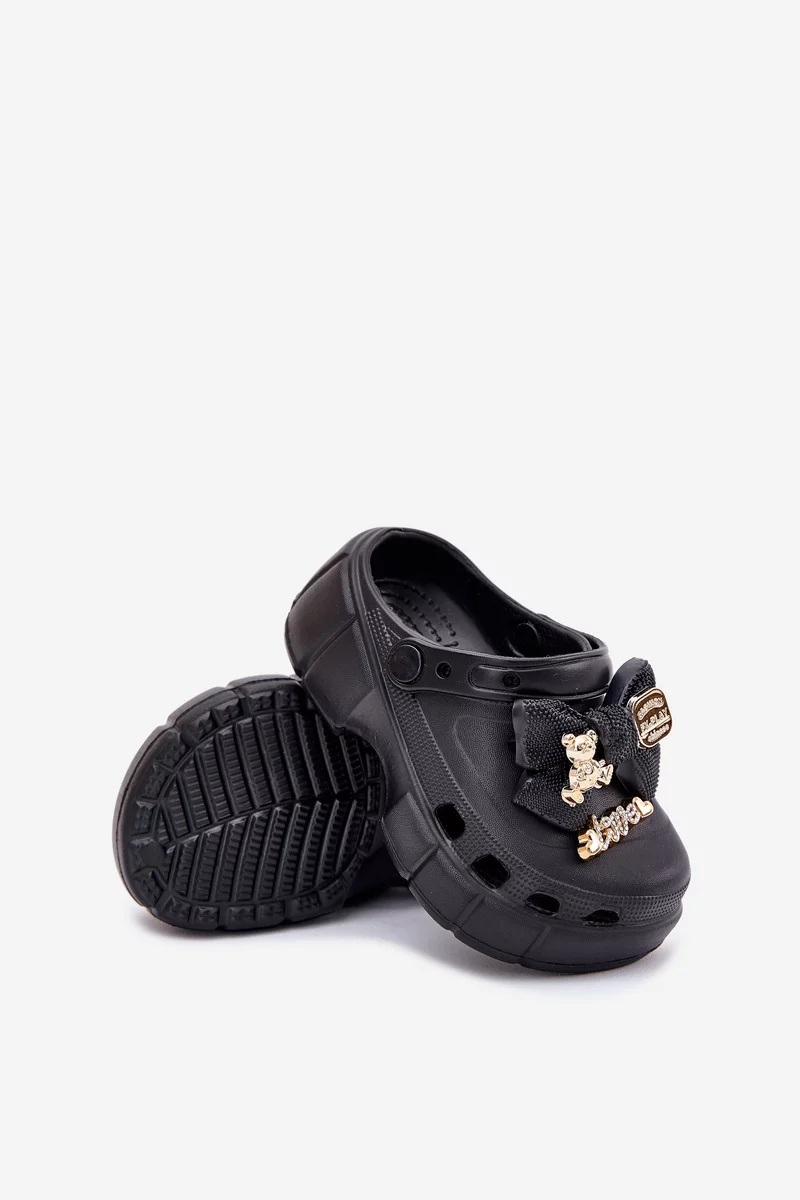 Dívčí dětské pantofle Selvana v černém provedení jsou lehkou a pohodlnou obuví ideální pro teplé dny. Měkký pěnový materiál poskytuje komfort při chůzi a je snadný na údržbu. Mašlička a drobné ozdoby dodávají pantoflím hravý, ale zároveň stylový vzhled, který potěší malé slečny.