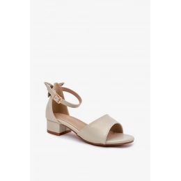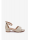 Zlaté lesklé sandálky na nízkém podpatku krásně doplní slavnostní šaty a dodají outfitu jemný třpyt.