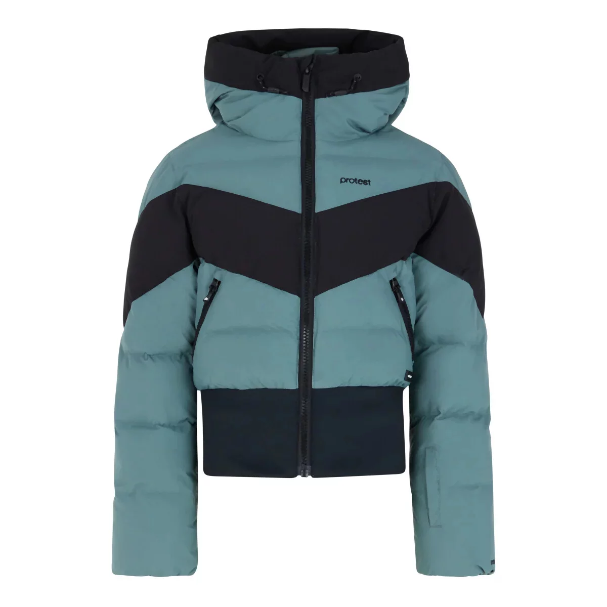Lyžařská a snowboardová bunda má stojací límec, pevnou kapuci a pasovou gumu, které vás ochrání před nepříznivými vlivy počasí.