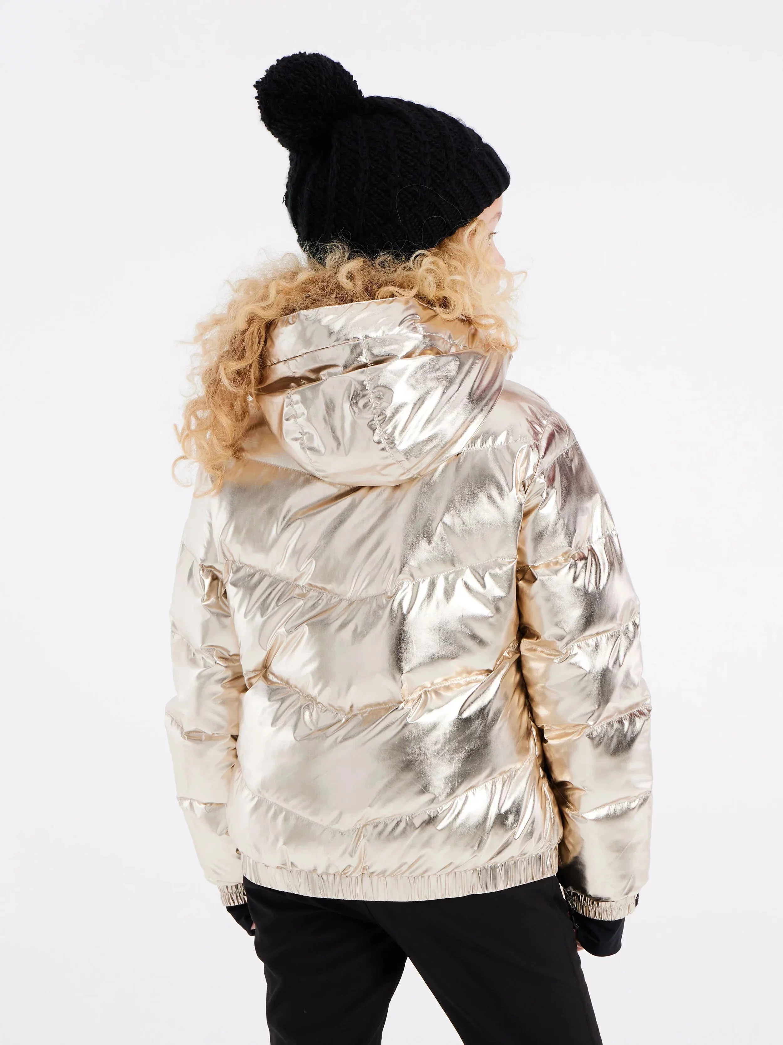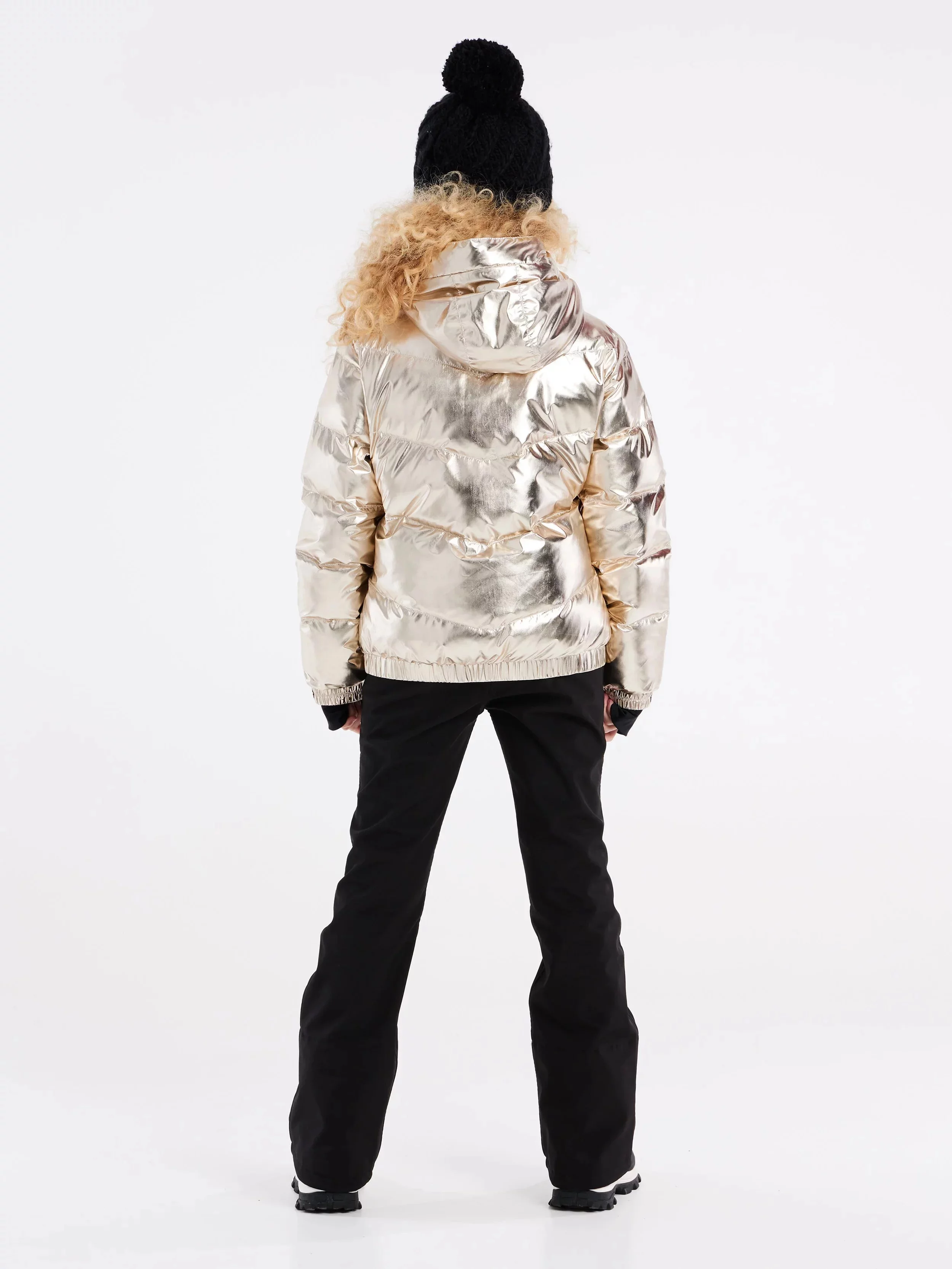 V této lyžařské a snowboardové bundě s lesklou úpravou budete doslova a do písmene všude zářícím středem pozornosti.