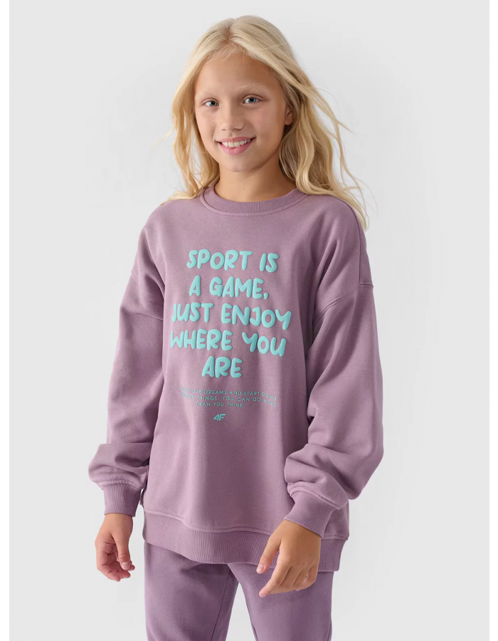 Dívčí tepláková mikina bez zapínání a bez kapuce je ideálním prvkem jak pro casualové, tak sportovní každodenní stylizace.
