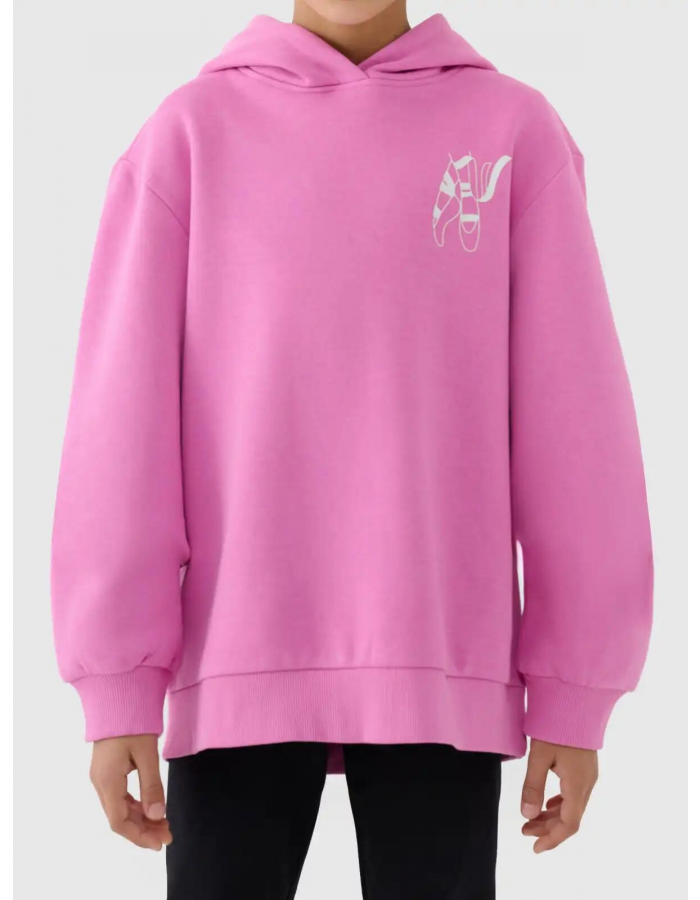 Na přední straně je umístěn originální potisk s motivem baletních špiček, který dodává mikině hravý a dívčí charakter.