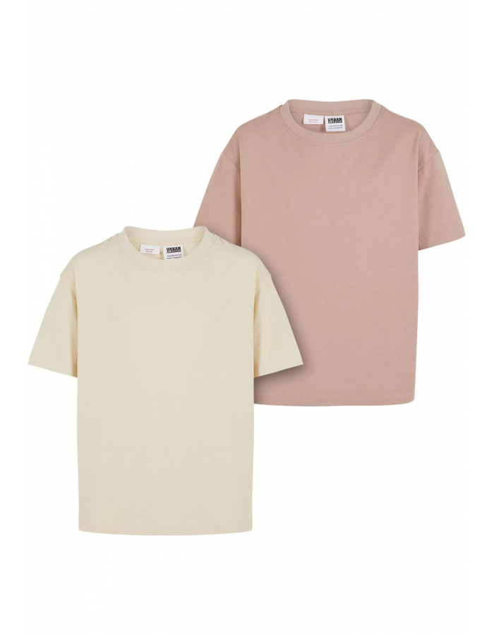 Tato sada dvou triček obsahuje jedno krémové a jedno růžové tričko s krátkým rukávem. Obě trička mají klasický rovný střih s kulatým výstřihem, což zajišťuje pohodlné nošení po celý den. Jsou vyrobena z kvalitního materiálu, který je příjemný na dotek a dobře se přizpůsobuje tělu. Tento základní kousek se hodí k různým stylům oblékání a je ideální volbou pro každodenní nošení. Sada je praktická a univerzální, skvělá do každého šatníku.