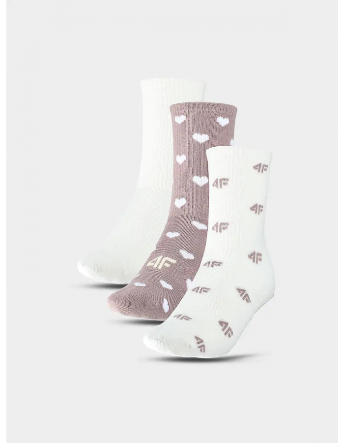 V balení jsou tři páry v různých designových variantách — jednobarevné, se srdíčky a s logy 4F — které dodají outfitu hravý a dívčí vzhled.