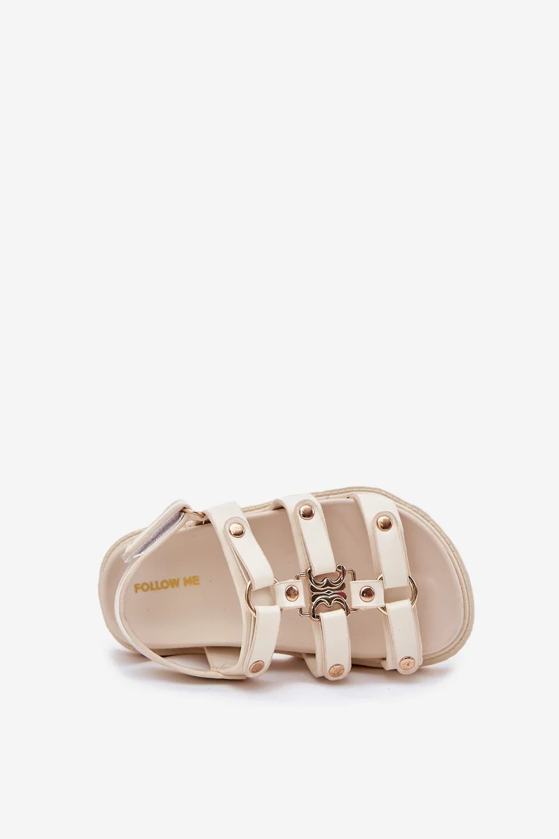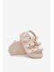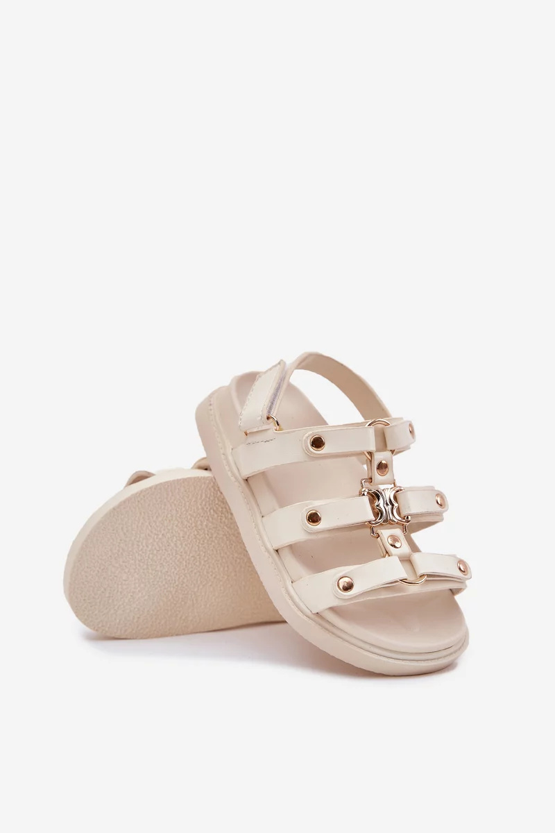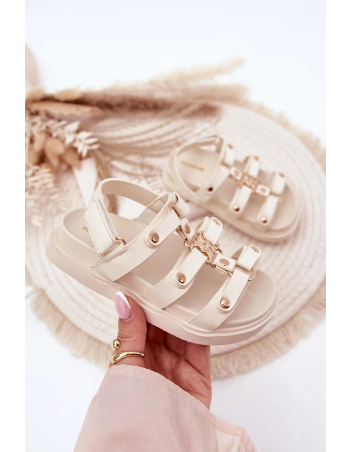 Béžové sandálky se zlatým detailem krásně doplní letní šaty, sukýnky i kraťasy a vytvoří jemný, elegantní dívčí outfit.