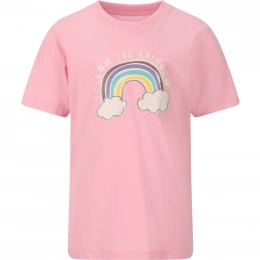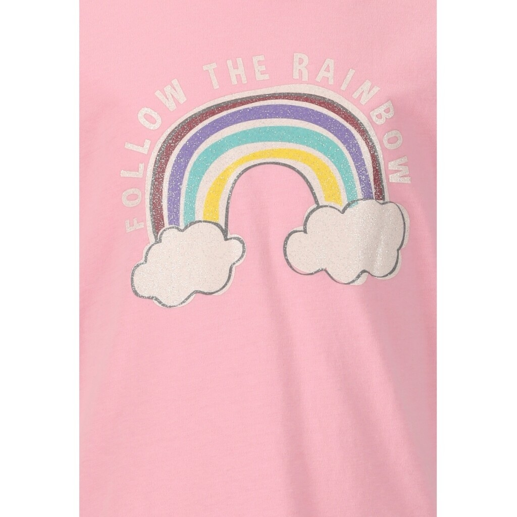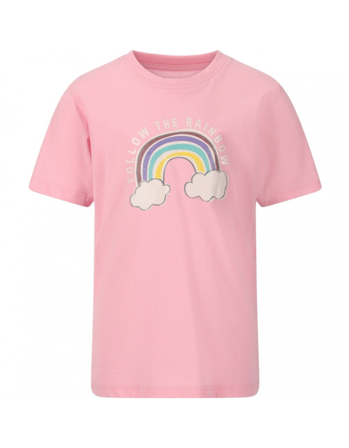 Rozjasněte šatník vaší malé princezny tímto veselým tričkem s potiskem duhy a nápisem „FOLLOW THE RAINBOW“.