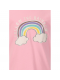Třpytivý potisk s duhou dodává tričku hravý a optimistický vzhled.