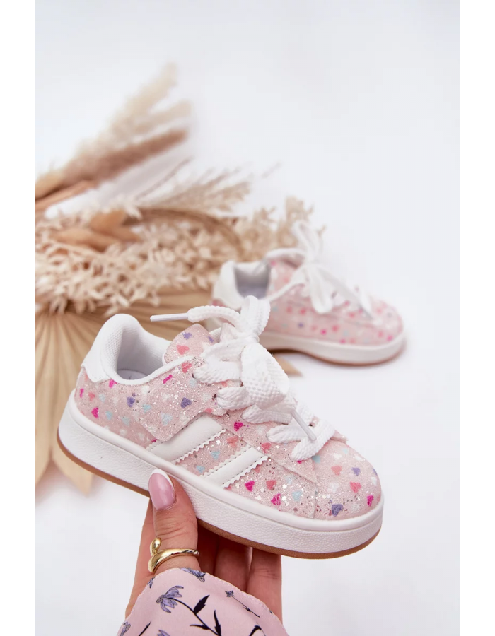 Dívčí sportovní boty Tessina v růžovém provedení zaujmou třpytivým designem se vzorem srdíček, který si malé slečny okamžitě zamilují. Pohodlný sportovní střih je přizpůsoben dětské noze a poskytuje komfort při každodenním nošení i aktivním pohybu. Lesklé provedení dodává obuvi hravý a výrazný vzhled.