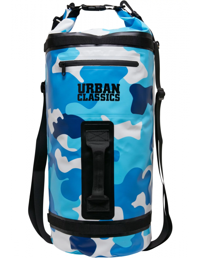 Tento hybrid batohu a batohu je dokonalým společníkem pro všechny outdoorové aktivity – dokonce i na vodě. Je vyrobena z vodoodpudivého PVC a lze ji přehodit pomocí dvou plátěných popruhů s nastavitelnou velikostí. Integrovaná rukojeť na zadní straně umožňuje přenášení jako běžnou tašku. Pro upevnění dalších zavazadel je k dispozici přidaný systém háčků, jakož i různé smyčky, kroužky a klipy, které jsou chytré a praktické možnosti. Batoh má také praktickou voděodolnou kapsu na zip a dvě průhledné síťované kapsy na přední straně. Na zadní straně je zdobena logem Urban Classics a pojme až tři litry.