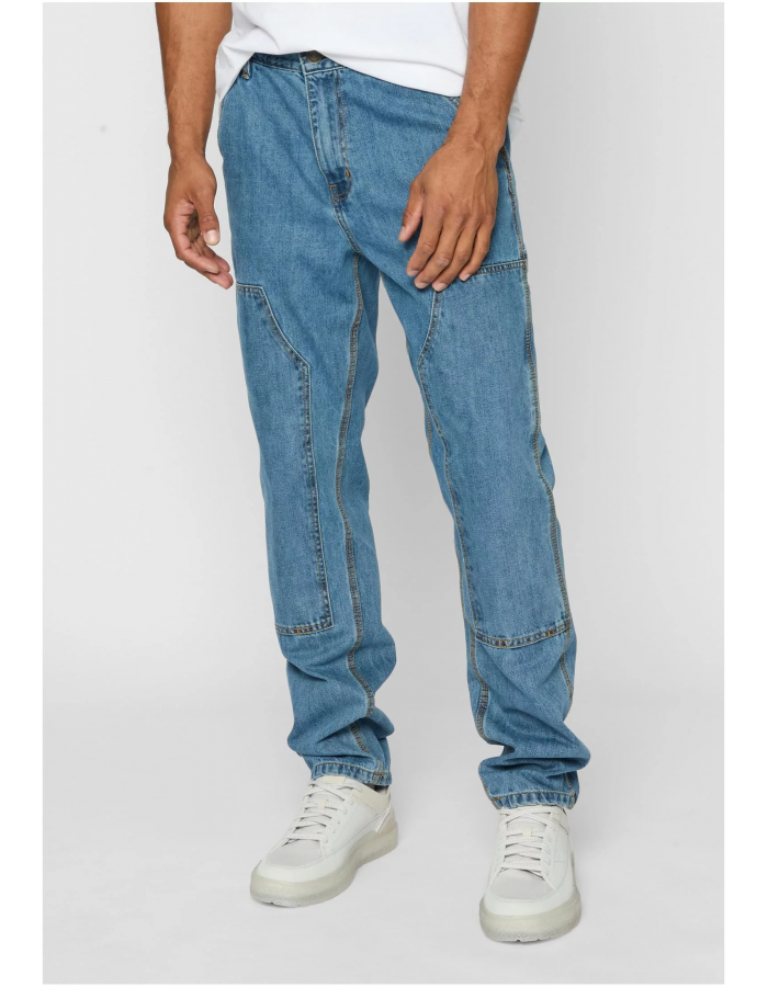 Pánské džínoviny obratně vstupují do módní arény s dlouhou dvojitou vrstvou a nápadnými vsadkami nad koleny. Uchopovací vzhled podtrhuje boční poutko na kladivo. Džíny samozřejmě nabízejí boční kapsy i našité zadní kapsy. Jsou vyrobeny ze zavedeného bavlněného denimu a mají regular fit.