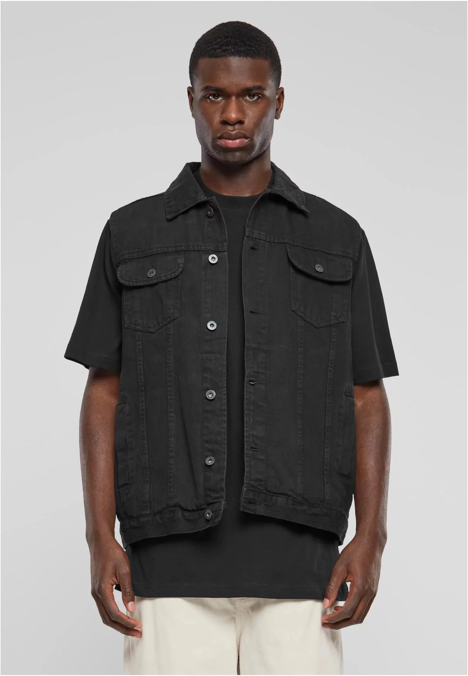 Vorwärts immer, rückwärts erst recht! Návrat do 80. let ist das Motto dieser ärmellosen Jeansweste von URBAN CLASSICS. Sie verfügt über alle klassischen Elemente wie die Knopfleiste, die zwei verschließbaren Brusttaschen und den umschlagbaren Kragen, ist bequem geschnitten und sieht auch noch gut aus.