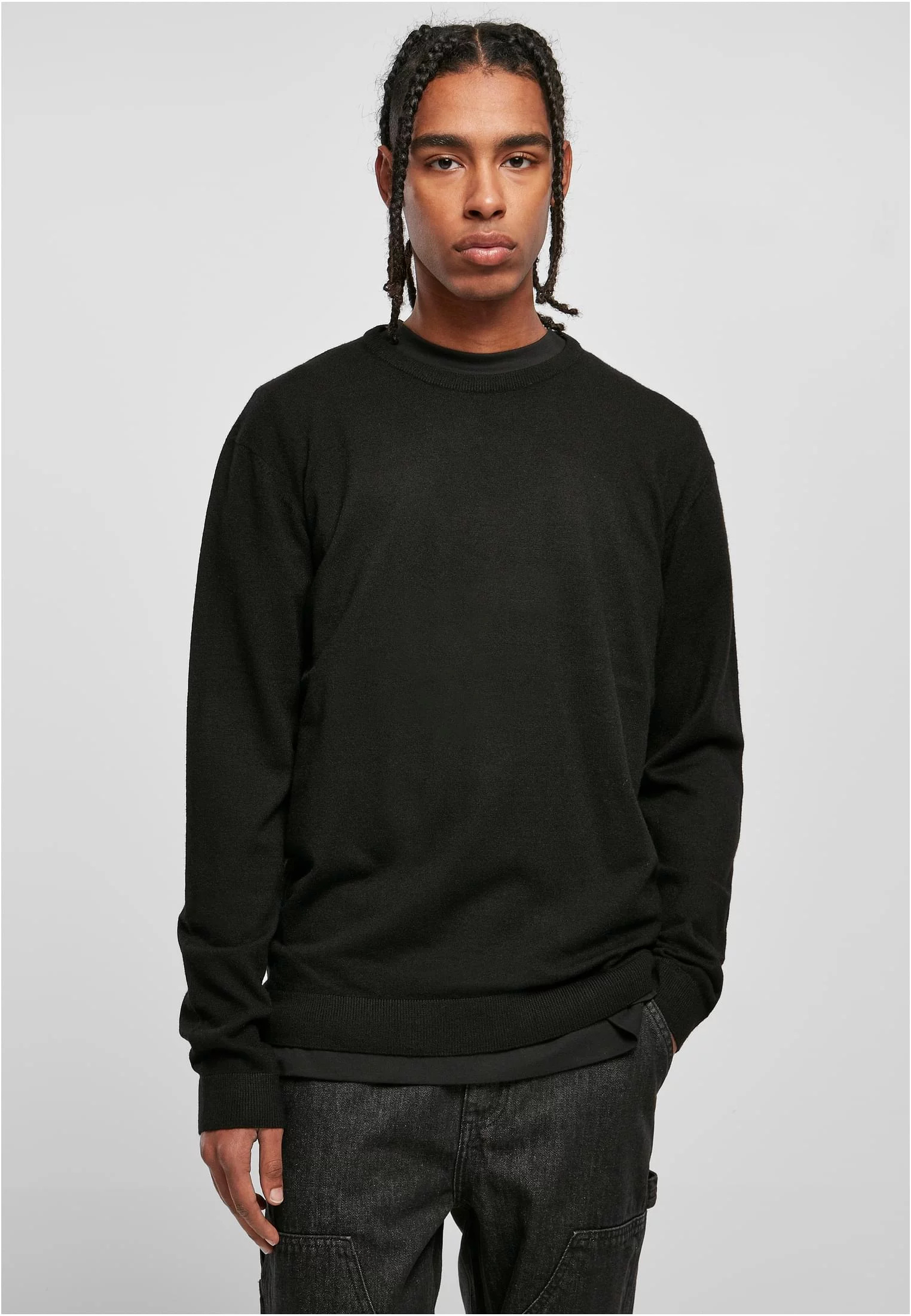 Pánský pletený svetr se prezentuje v jemném klasickém úpletovém designu se širokými žebrovanými manžetami na rukávech a lemu a také žebrovaným výstřihem. Je volného střihu. Tato košile obsahuje viskózová vlákna LENZING™ECOVERO™ , polyester a nylon.