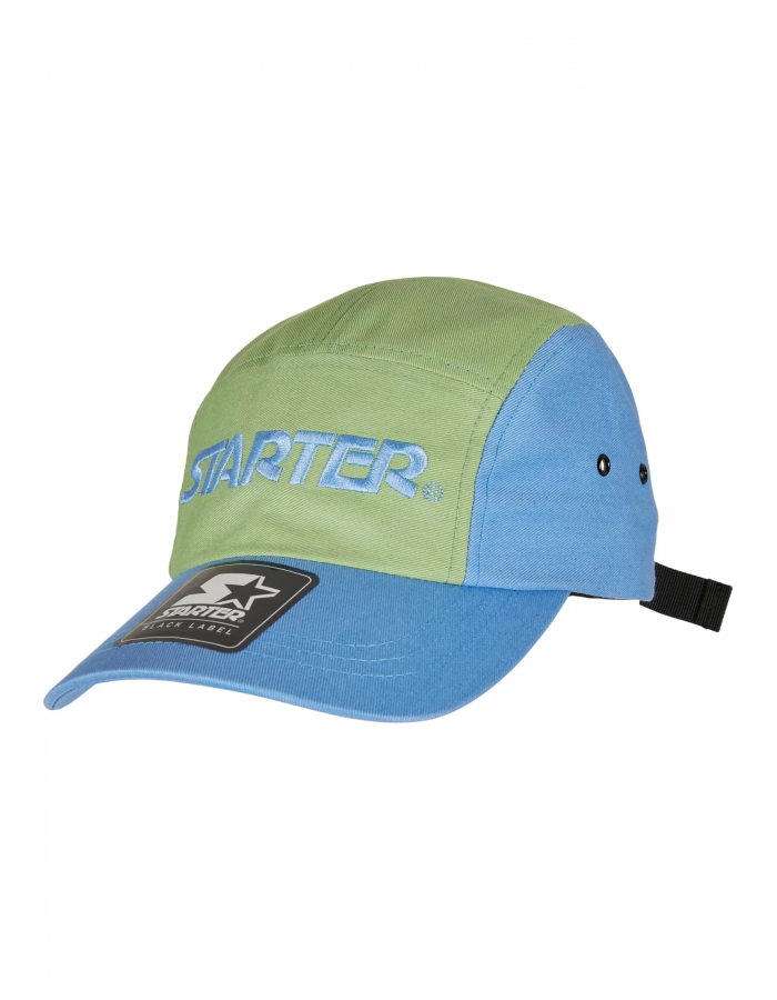 Svěží žokejská čepice od Starter Black Label je vyrobena ze 100% bavlny a poskytuje dokonalý komfort při nošení. Uprostřed přední části je umístěna výšivka nápisů Starter®. Další nálepka zdobí zakřivený kšilt s ozdobnými švy. Mimochodem, čepice je rozdělena do dvou barev a vyznačuje se neobvyklými větracími otvory, které jsou uspořádány do párů po stranách čepice. Čepice se na zadní straně nastavuje pomocí pásku se zapínáním.