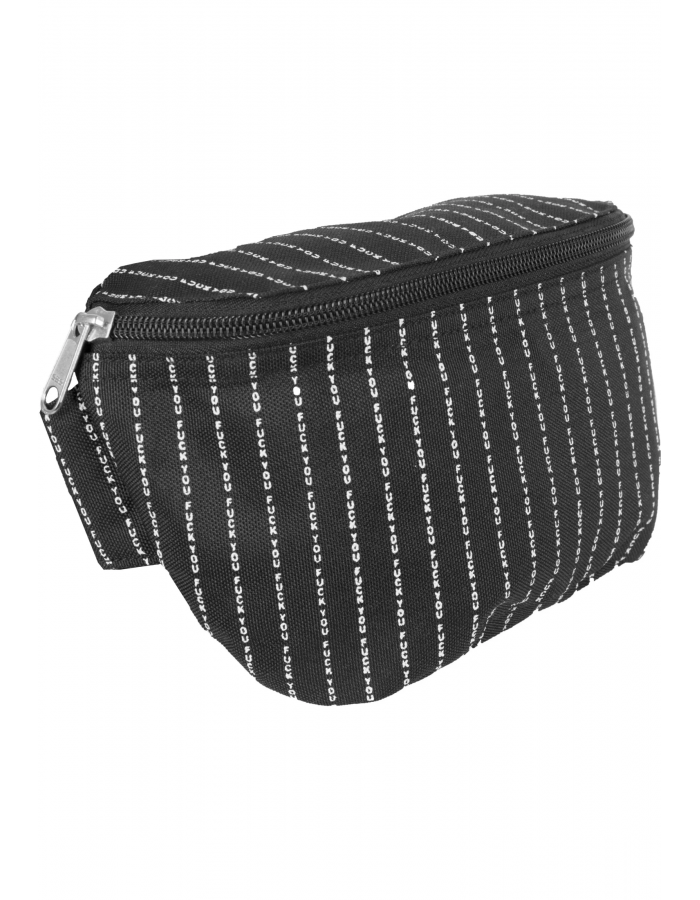 Kapsáři ztratí chuť vás krást, když se podívají na design této trendy kabelky. Černou přední část vyplňují velmi přesvědčivé pruhy "Fuck You". To pomůže rádoby zlodějům ukázat, co se sebou mají raději dělat. Noste bederní kousek, kdykoli chcete mít své nezbytnosti na bezpečném místě, například při cestování, nakupování ve městě nebo na příštím festivalu. Boční taška „fuck you“ má vpředu průběžný zip a lze ji zapnout pohybem zápěstí.