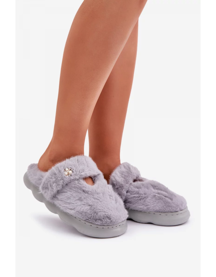 Futrzane Pantofle S Malou Broží Šedé Primaria 36/37