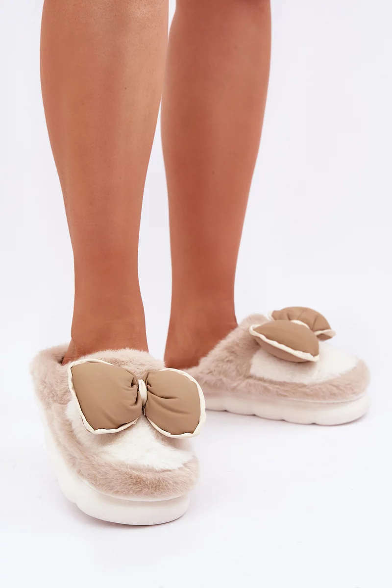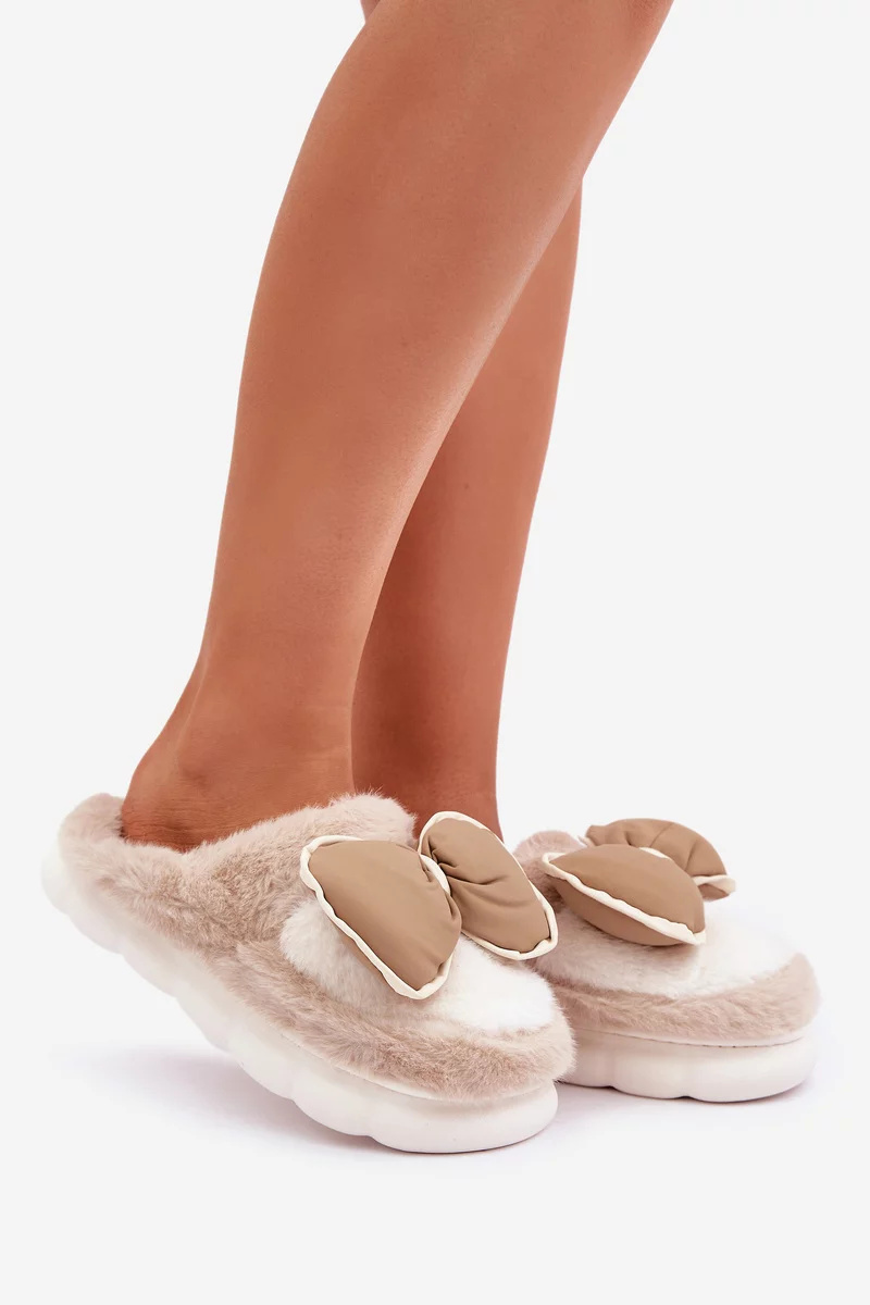 Dámské pantofle vyrobené z měkkého, útulného kožíšku, dokonale obepínají nohy, zajišťují teplo a pohodlí. Model osazený na silnější podrážce, což přidává stabilitu a izoluje od chladné podlahy. Zakryté ponožky poskytují dodatečnou ochranu před chladem, což činí pantofle ideální volbou pro chladné dny. Přední část zdobená mašlí, která dodává výjimečný půvab. Stylové a praktické! Při výběru velikosti se prosím řiďte tabulkou velikostí.
