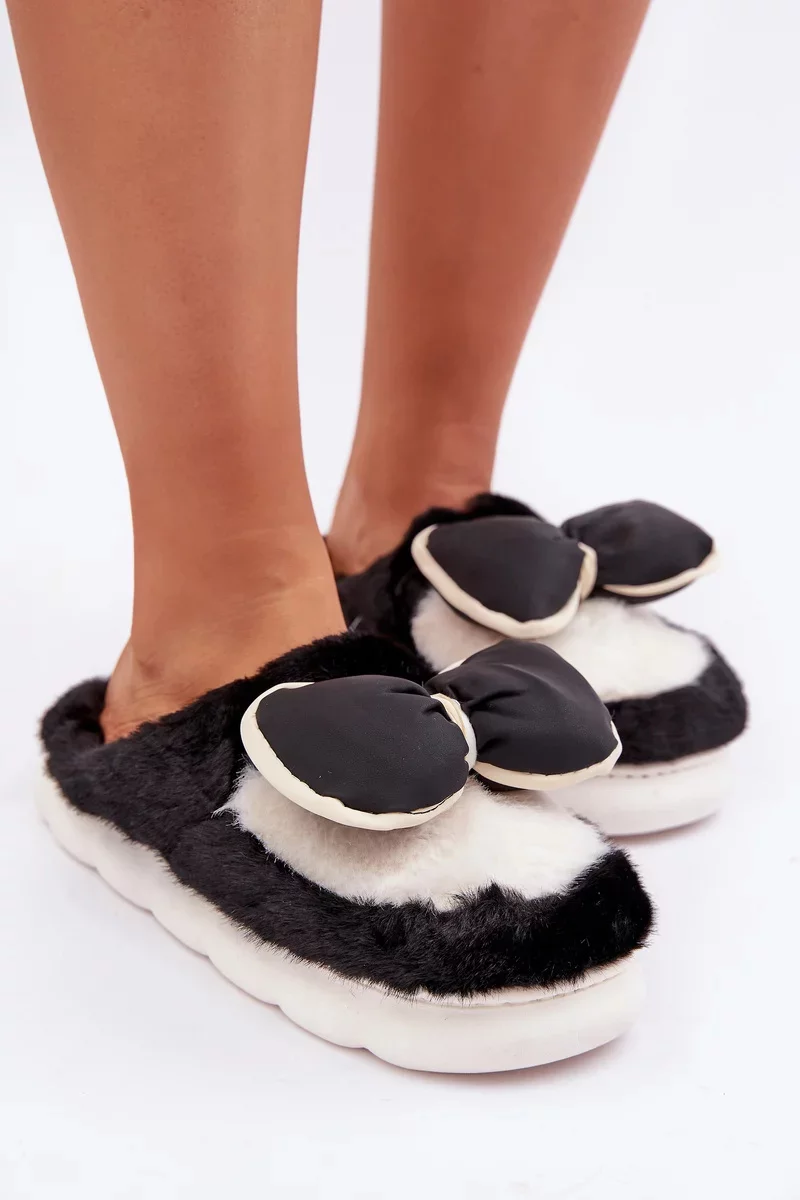 Dámské pantofle vyrobené z měkkého, útulného kožíšku, dokonale obepínají nohy, zajišťují teplo a pohodlí. Model osazený na silnější podrážce, což přidává stabilitu a izoluje od chladné podlahy. Zakryté ponožky poskytují dodatečnou ochranu před chladem, což činí pantofle ideální volbou pro chladné dny. Přední část zdobená mašlí, která dodává výjimečný půvab. Stylové a praktické! Při výběru velikosti se prosím řiďte tabulkou velikostí.