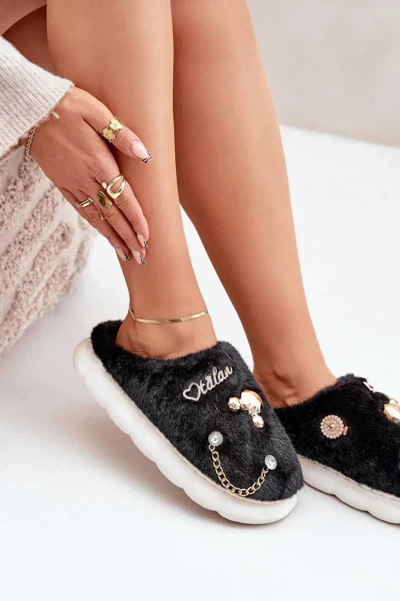 Stylové dámské chlupaté pantofle s módními ozdobami jsou skvělou volbou na chladné dny. Vyrobené z měkkého a teplého materiálu, poskytují výjimečné pohodlí při nošení. Ideální k relaxaci doma. Možné jemné zabarvení na podrážce!! Při výběru velikosti se prosím řiďte tabulkou velikostí.