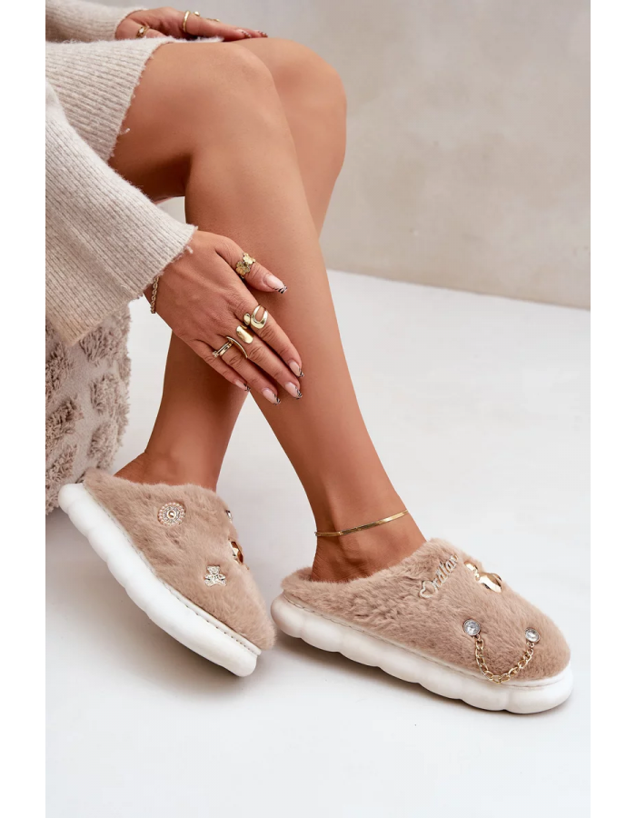 Futrzane Pantofle S Brožemi Tmavě béžové Ivelfedi 36/37